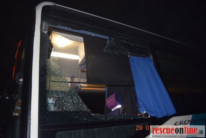 Kamión spätným zrkadlom rozbil okná na autobuse