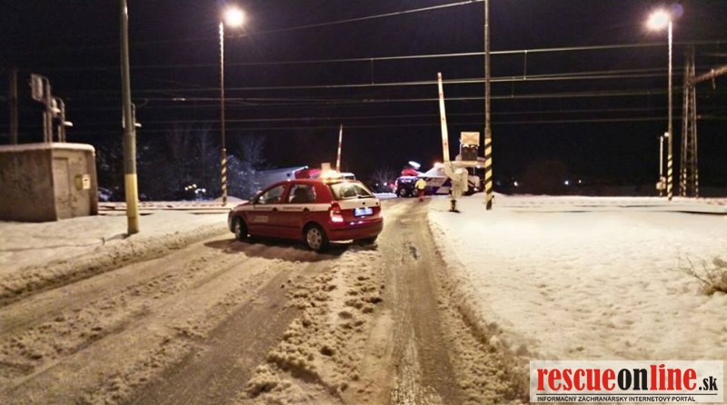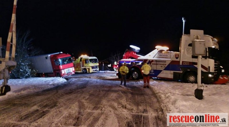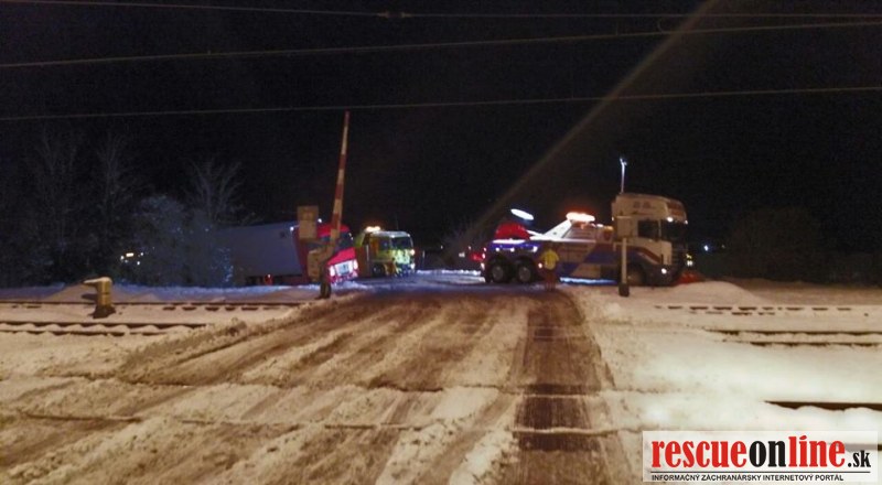 Kamión uviazol na železničnom priecestí