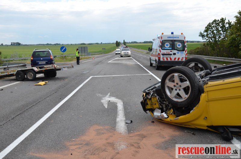 Sereď / Dnes došlo k dopravnej nehode na nadjazde ponad R1 (pri Milexe) v smere Sereď - Sládkovičovo. Došlo ku kolízii osobného motorového vozidla a prívesného vozíka ťahaného za iným vozidlom. Osobné auto po kolízii skončilo na streche.