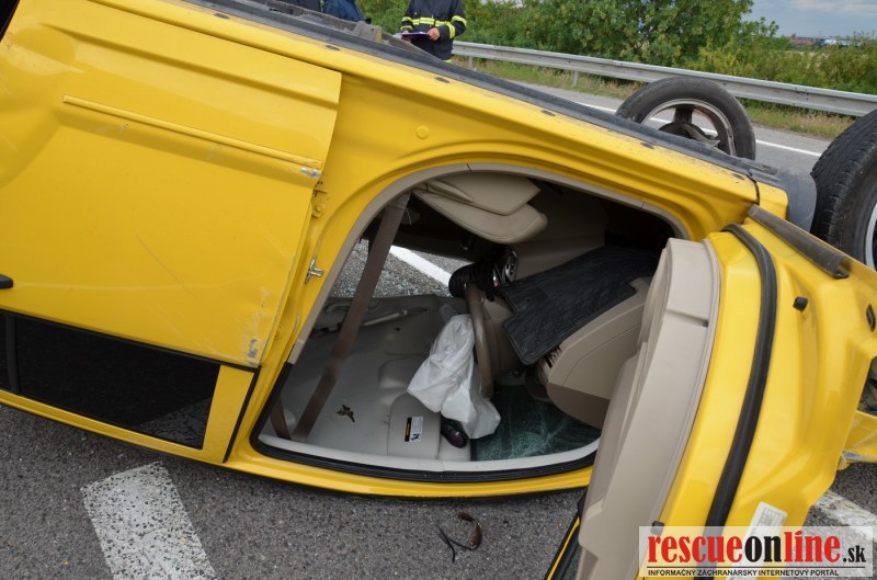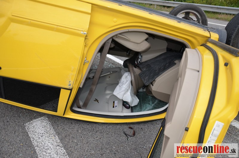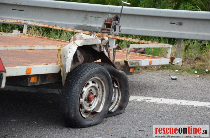 Kolízia auta s prívesným vozíkom - auto skončilo na streche