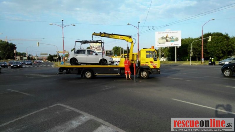 Odťahovka Jaslovský |MM| Dnes pri jazde od Kuchajdy po Tomašikovej ul. s Fábiou vošiel vodič do križovatky s Rožňavskou ul. v domnení, že je v priebežnom pruhu. Bohužiaľ, bol v odbočovacom do ľava. V ten moment sa však už ľavým rohom narazil s oproti jazdiacim Fordom,ktorý odbočoval na Rožňavsku smerom k Bajkalskej ul.