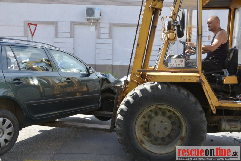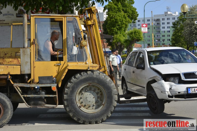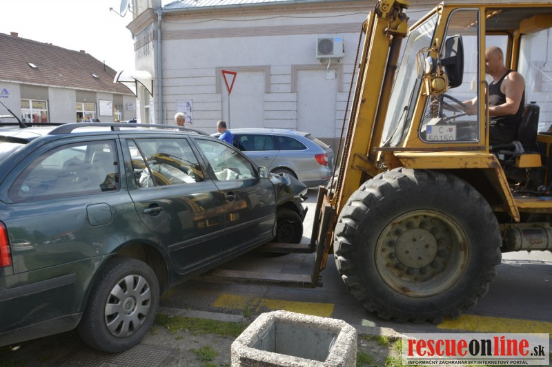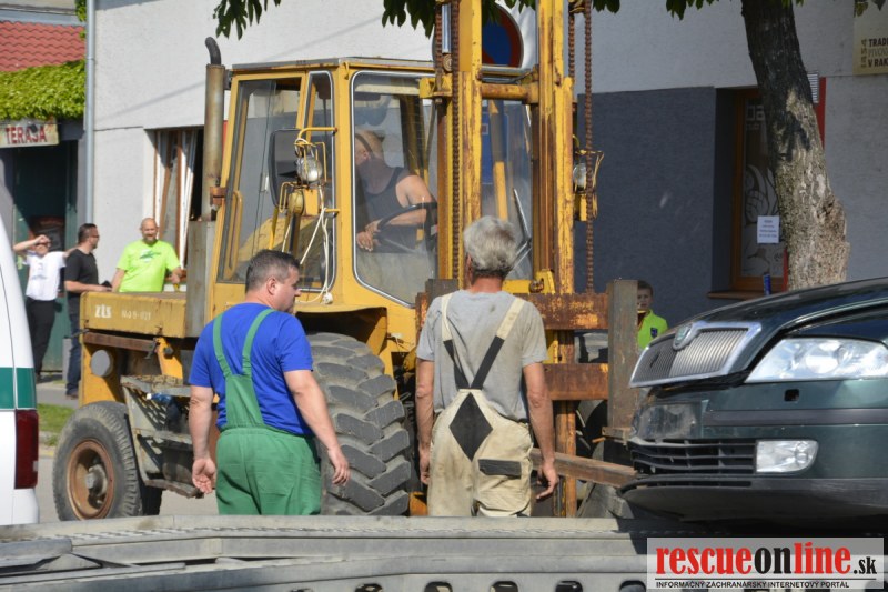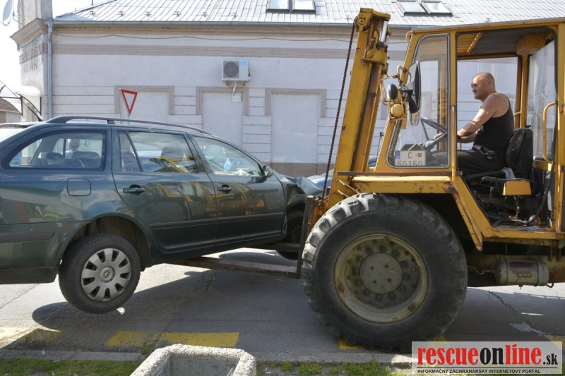 Sereď | Včerajšia dopravná nehoda (09.05.2016) v centre mesta čiastočne obmedzila premávku okolo námestia. Okoloidúcich však zaujal inovatívny prístup odťahovky pri odpratávaní havarovaných vozidiel. Obratná manipulácia Mikina Poláka na vysokozdvižke a naloženie nepojazdných áut za niekoľko minút zamedzili ďalšiemu blokovaniu premávky na tomto frekventovanom úseku v meste. Z rýchlej akcie prinášame krátke video a fotoreportáž.
