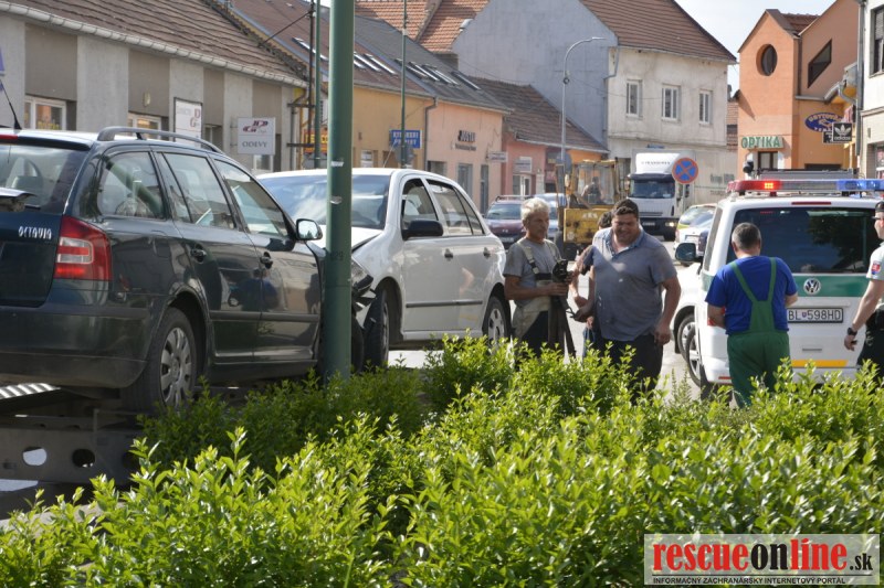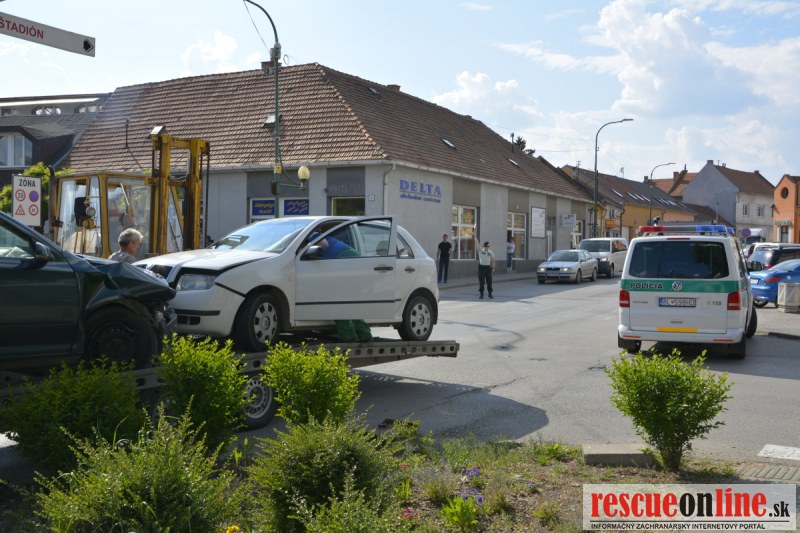 "Dopravná nehoda sa stala na Ul. SNP o 15.45h. 32 ročný vodič z Galanty viedol osobné auto Škoda Fabia. Pri odbočovaní doľava sa pravdepodobne nedostatočne venoval riadeniu auta, pričom nedal prednosť v jazde oproti idúcej Škode Octavia. V dôsledku zrážky sa pri nehode ľahko zranil 36 ročný vodič z Matúškova. Polícia obidvoch vodičov podrobila dychovej skúške, pričom jej výsledok bol negatívny. Presné príčiny nehody polícia vyšetruje" .
