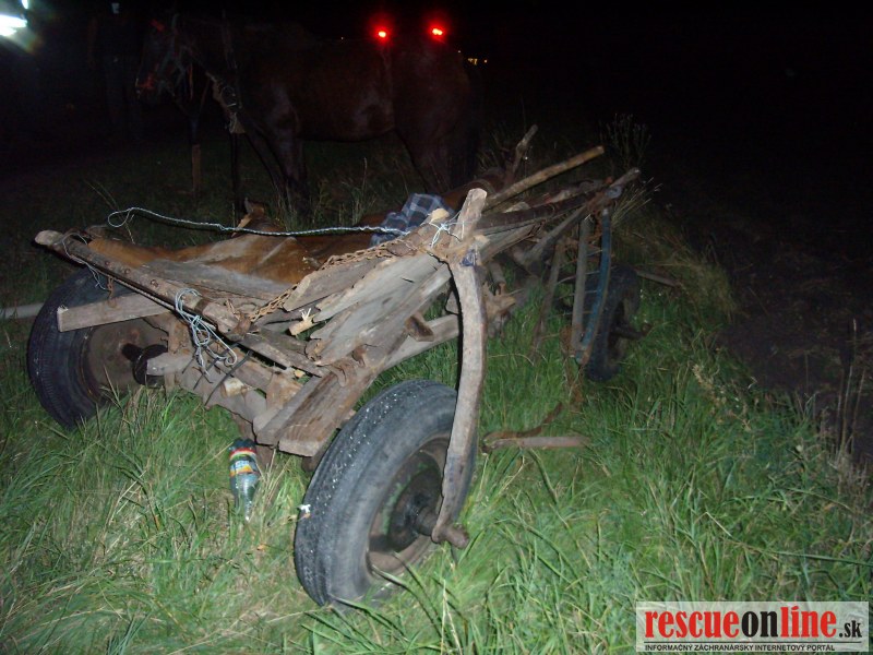 66 ročný vodič Fiatu Marea, ťahajúci prívesný vozík, išiel v smere na Nové Zámky, pričom pred Nesvadmi zaregistroval na ceste neosvetlený konský povoz. Kôň stál v strede vozovky a vodič Fiatu sa snažil zrážke vyhnúť tak, že strhol riadenie doprava. Narazil však do povozu, ktorý riadil 50 ročný pohonič. V jeho dychu neskôr policajti odhalili 1,23 mg/l alkoholu / v prepočte 2,56 promile/.