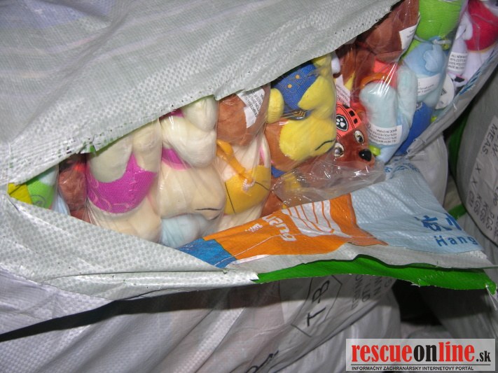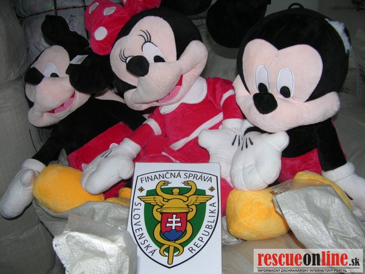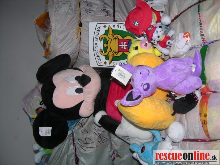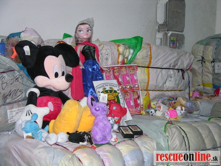 Colníci v Dunajskej Strede skontrolovali kontajner, ktorý bol dovezený z Číny a podľa predložených dokladov určený na český trh. Pri kontrole tovaru colníci zistili, že sa v ňom nachádza i tovar,ktorý sa nenachádzal v predložených colných dokladoch. Po dôkladnej fyzickej kontrole vzniklo podozrenie z porušovania práva duševného vlastníctva ochranných známok SMURF, PRADA, MERCEDES, AUDI, BMW, MINIONS, POKEMON, MINECRAFT atď.