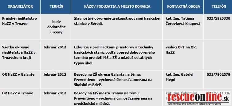 Kalendár podujatí KR HaZZ v Trnave nájdete v priloženej tabuľke.