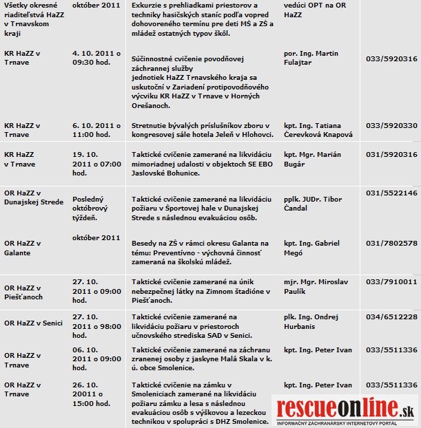 KR HaZZ v Trnave - podujatia plánované na október 2011 - doplnenie