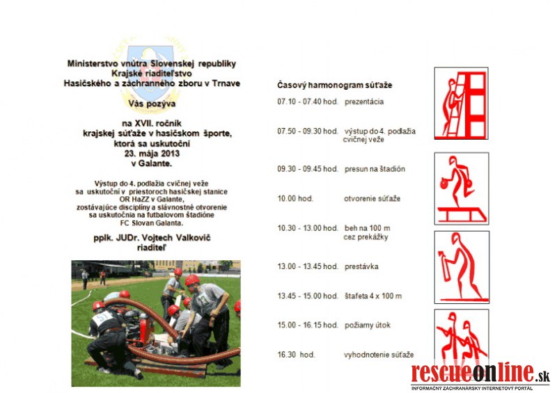 KR HaZZ Trnava |MM| MVSR, KR HaZZ Trnava Vás pozýva na XVII. ročník krajskej súťaže v hasičskom športe, ktorá sa uskutoční 23. mája 2013 v Galante.