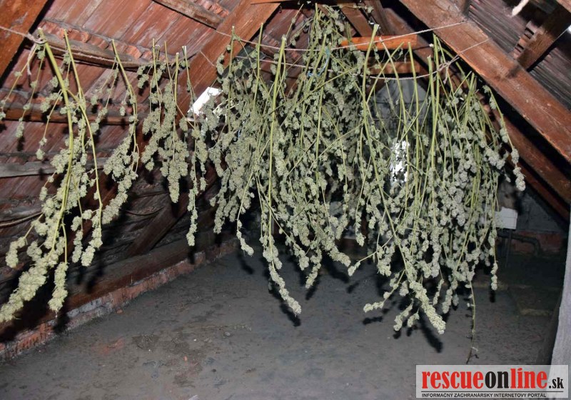 KRPZ Banská Bystrica |MM| Polícii v Žiari nad Hronom sa podarilo objasniť obzvlášť závažný prípad drogovej trestnej činnosti. V utorok (7.11.) vykonali žiarsky kriminalisti v jednom z rodinných domov na Šoltésovej ulici v Žiari nad Hronom domovú prehliadku, pri ktorej bola v jeho podkroví nájdená sušina zelenohnedej farby charakteristického zápachu a to vo forme sušiacich sa rastlín, taktiež vo forme voľne kvitnúcich rastlín. Polícia počas prehliadky našla aj sušinu zelenohnedej farby uschovanú vo viacerých nádobách i škatuliach. Nájdené podozrivé látky boli zaistené a následne zaslané na expertízne skúmanie za účelom zistenia ich pôvodu. V stredu (8.11.) bolo z obzvlášť závažného zločinu nedovolenej výroby omamných a psychotropných látok, jedov alebo prekurzorov, ich držanie a obchodovanie s nimi vznesené obvinenie 43-ročnému mužovi zo Žiaru nad Hronom. Zo strany vyšetrovateľa bol podaný aj podnet na vzatie obvineného do vyšetrovacej väzby. V prípade dokázania viny hrozí obvinenému mužovi trest odňatia slobody na 15 až 20 rokov. Vykonaná expertíza totiž preukázala, že v prípade zaisteného rastlinného materiálu išlo o omamnú a psychotropnú látku „CANABIS“, pričom podľa predbežných výsledkov, množstvo zaistenej sušiny predstavovalo takmer 6 kilogramov. Podľa doterajšieho expertízneho skúmania je možné zo zaisteného množstva sušiny vyrobiť viac ako 25-tisíc obvykle jednorazových dávok. Kriminalistickí experti však budú vyhodnocovať aj nevysušené časti zaistených rastlín, no v tomto prípade sa bude môcť analýza vykonať až po ich vysušení.