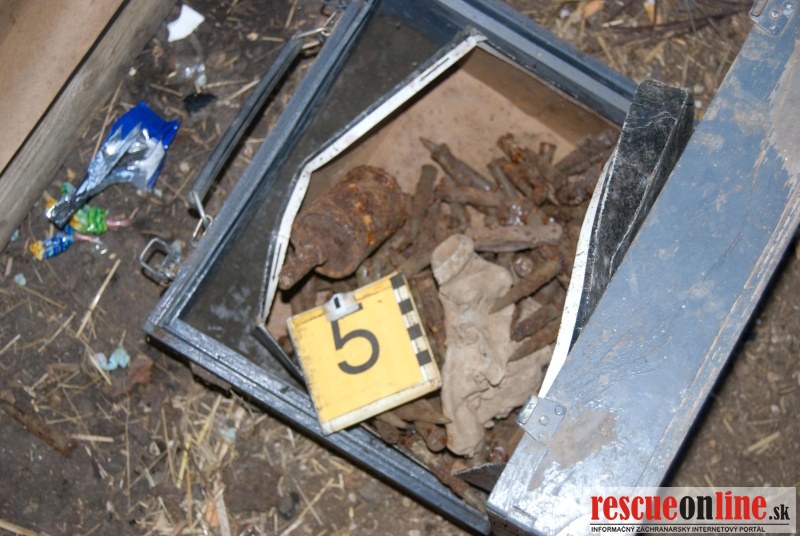 KRPZ Nitra |MM| V pondelok (10.04.) skoro ráno prebehla v rodinnom dome v obci Rybník v levickom okrese domová prehliadka, pri ktorej bola nájdená rôzna munícia. Majitelia v dome prechovávali ručný útočný granát ruskej výroby, 75 mm delostreleckú strelu a 219 nábojov do ručných zbraní v rôznom stave a funkčnosti.