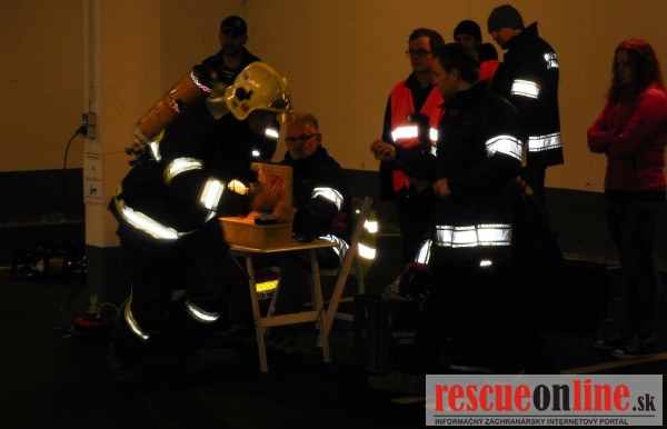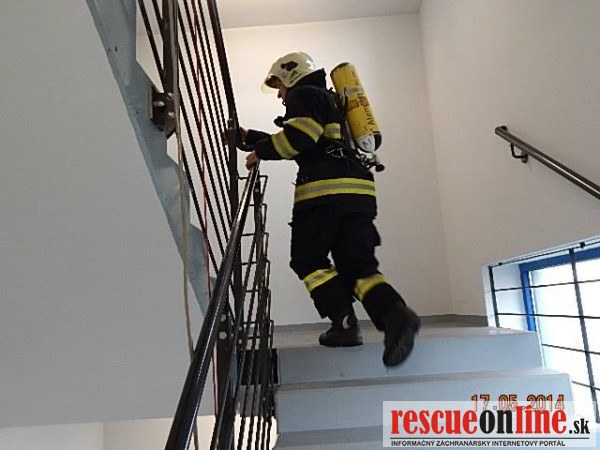 V prvej disciplíne museli súťažiaci zdolať cez únikové schodisko jedenásť podlažnú administratívnu budovu. Úloha pozostávala zo zdolania budovy hore po schodoch a s obrátkou dolu schodmi a to výbehom v plnom hasičskom výstroji aj s autonómnym dýchacím prístrojom.