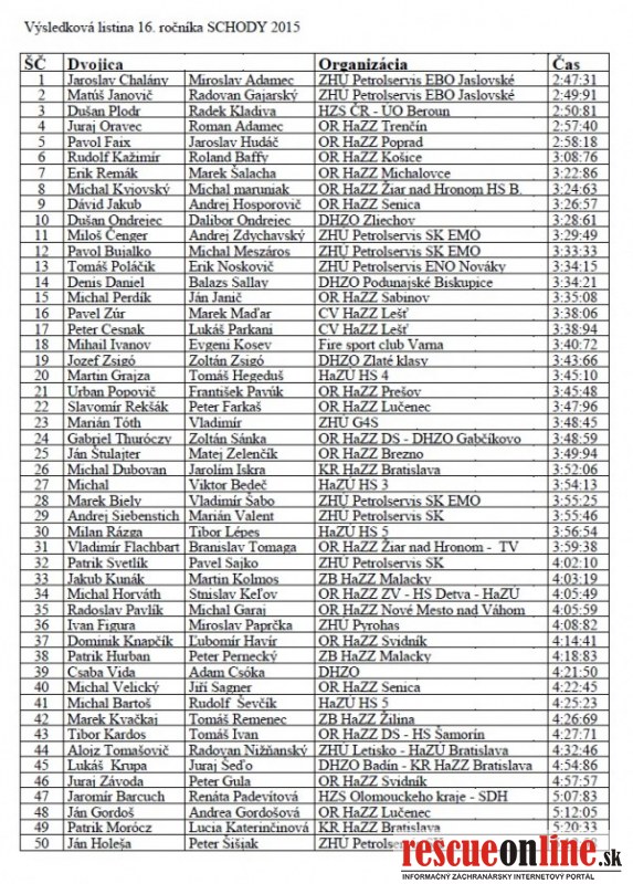 Súťaže sa tento rok zúčastnilo 55 súťažiacich dvojíc zo Slovenska, z Českej republiky a Bulharska. Na 1. mieste sa umiestnili Jaroslav Chalány a Miroslav Adamec zo ZHÚ Petrolservis EBO Jaslovské Bohunice s časom 2:47:31. Rekordný čas 2:24 min., ktorý doposiaľ nebol prekonaný, získali hasiči z Bieloruského Minska v roku 2008.