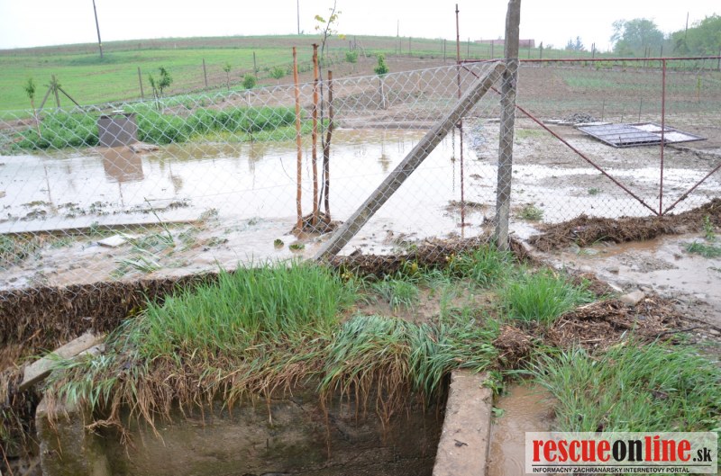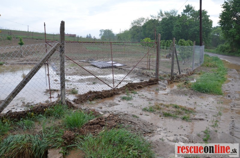 V piatok 04.05.2012 v neskorších popoludňajších hodinách sa zvýšili dažďové dávky aj na juhozápadnom Slovensku. Ibaže vo Vinohradoch nad Váhom sa dážď takmer obliekol do prietrže mračien. Dedinka dlhá 7 km, väčšinou posiata brehmi zažívala hotové peklo. Voda sa valila z kopcov do obce i v obci nesmierne veľkou silou a zalievala nielen ulice, ale aj dvory, prízemie podlažia i pivnice. Ako nám povedal 80 ročný občan v časti obce Paradič, na takýto príval vody sa za tie roky napamätá. Dokonca voda podmyla a strhla aj kus cesty v tejto časti obce. Cesty boli ešte večer plné vody a blata a nad tzv. Katkou sa dlhší čas bude dať ísť do kopca len pešo. Ceste je vymletá a ostali v nej hlboké jarky. Pod obcou smerom k Váhu sú časti polí zatopené. Prácu mali v obci aj usilovní hasiči.