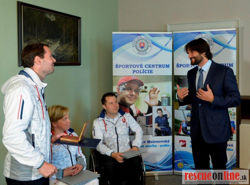 MVSR |MM| Podpredseda vlády a minister vnútra SR Robert Kaliňák slávnostne ocenil paralympionikov Veroniku Vadovičovú a Radoslava Malenovského, za ich úspechy a reprezentáciu Športového centra polície. Taktiež ocenil aj trénera Veroniky, Milana Goleňu. Veronika Vadovičová sa venuje disciplínam - vzduchová puška: R3 a R2, malorážka R6 a R8. Radoslav Malenovský sa venuje disciplínam - vzduchová puška R3, malorážka R6 a R7. Športovci dostali pamätnú medailu Ministra vnútra SR a tréner čestnú plaketu Ministra vnútra SR.