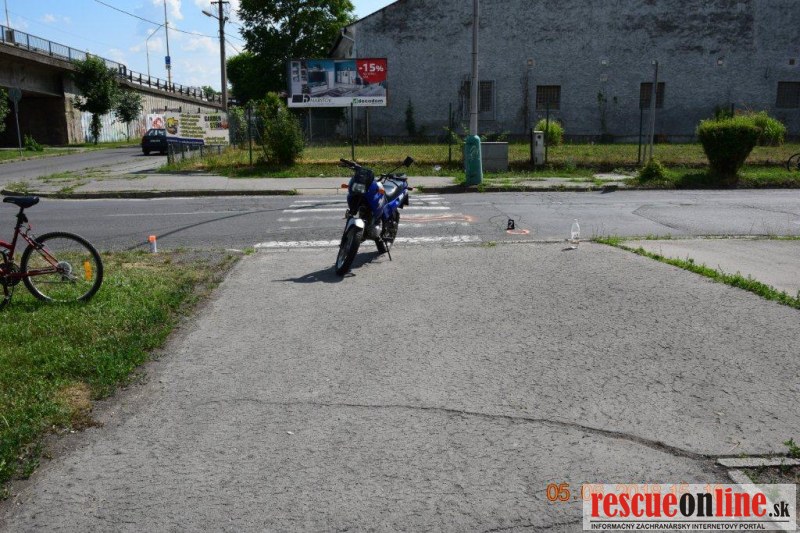 KRPZ Banská Bystrica |MM| Polícia v Lučenci vyšetruje dopravnú nehodu, ktorá sa stala 5.6. o 14.38 hodine, na ulici Martina Rázusa v Lučenci. 18-ročný vodič motocykla Jawa z Panických Draviec, jazdil po ulici Martina Rázusa smerom k Železničnej ulici, kde zrazil chodcov: 38-ročného muža a 11-ročné dievčatko z Lučenca. Motocyklista svojou nepozornosťou nedal prednosť chodcom, ktorí prechádzali z pohľadu vodiča z ľavej strany na pravú po priechode pre chodcov a ešte tlačili aj bicykel. Vodič motocykla a chodec utrpeli pri nehode ľahké zranenia s predpokladanou dobou liečenia do 7 dní a maloletá chodkyňa podľa predbežnej lekárskej správy utrpela zranenia s dobou liečenia do 32 dní ak nenastanú komplikácie. Škoda na motocykli je odhadnutá na 200 eur. Alkohol u vodiča motocykla zistený nebol, na mieste mu bol zadržaný vodičský preukaz. Polícia začala trestné stíhanie pre prečin ublíženie na zdraví.