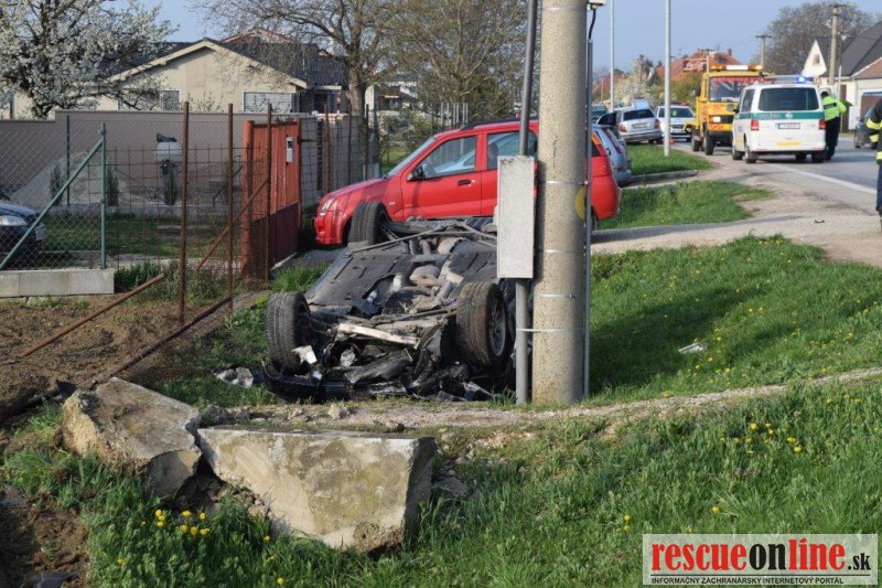 KRPZ Trnava |MM| Polícia vyšetruje dopravnú nehodu, ktorá sa stala včera (11.4.) o 17.00 h v obci Madunice (okr. Hlohovec). 24 ročný Marek z Piešťan jazdil na aute BMW 3 Combi po ceste prvej triedy. V križovatke na začiatku obce predchádzal auto Škoda Fabia, ktoré odbočovalo vľavo, pričom do neho narazil. BMW bolo v dôsledku zrážky odhodené mimo cestu vľavo, do plotu a príjazdového múrika a následne sa prevrátilo na strechu. Mimo cesty skončila aj Fabia. Obaja vodiči utrpeli ľahké zranenia, ich dychové skúšky na alkohol boli negatívne. V ďalšom preverovaní polícia zistila, že vodič BMW nie je držiteľom vodičského oprávnenia. Dopravná nehoda je v štádiu vyšetrovania.