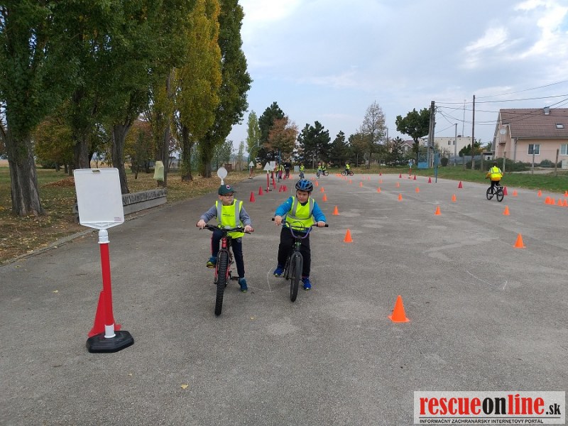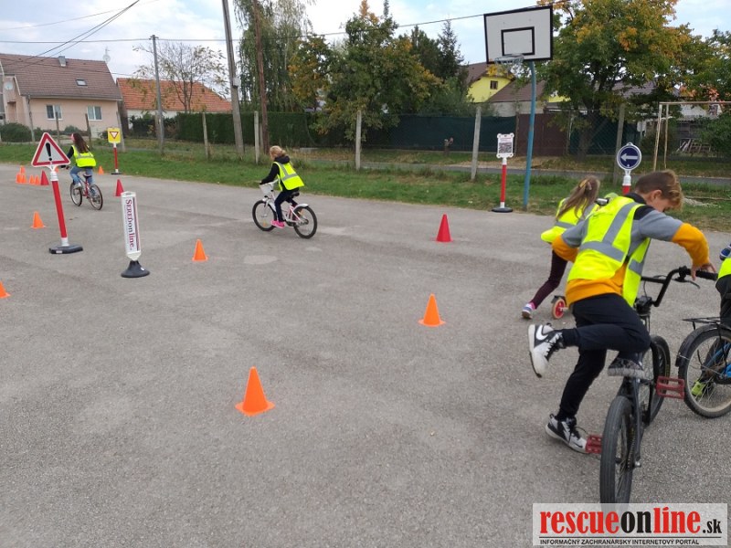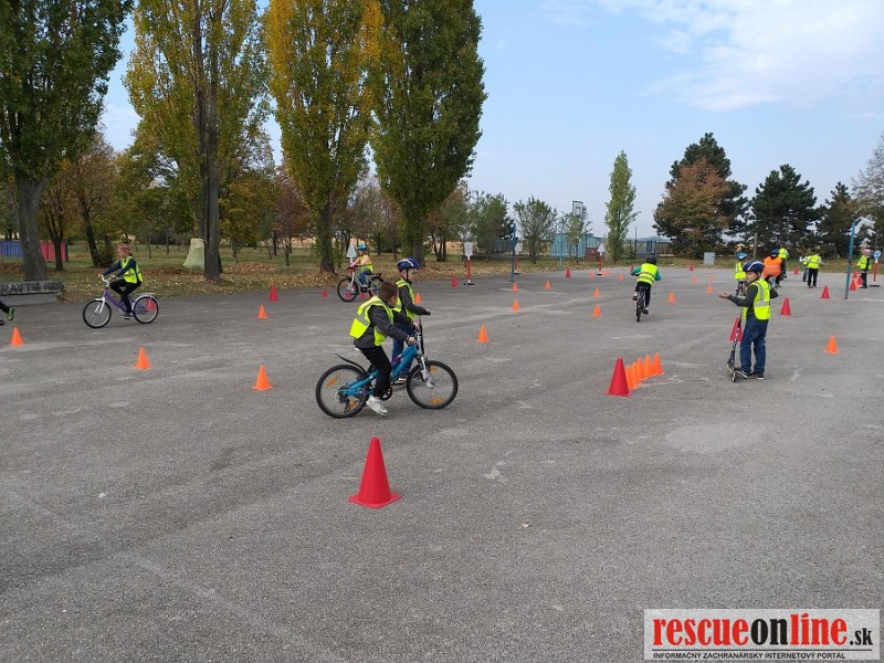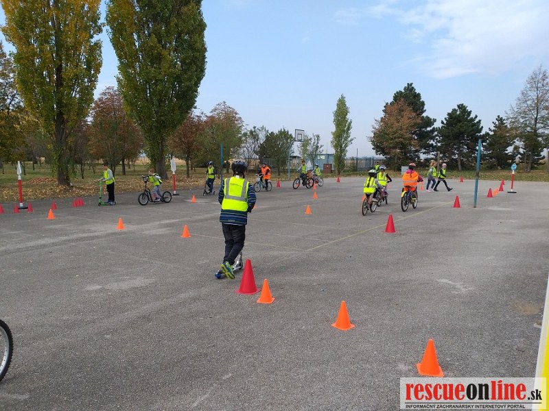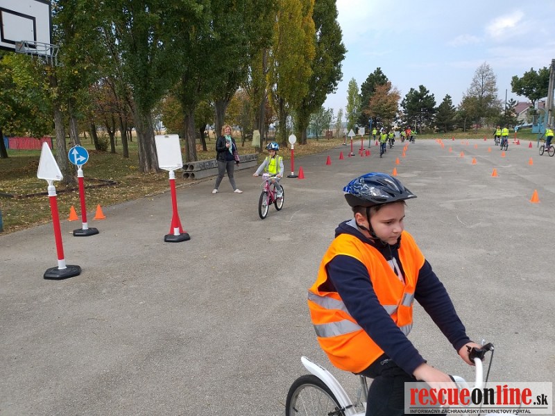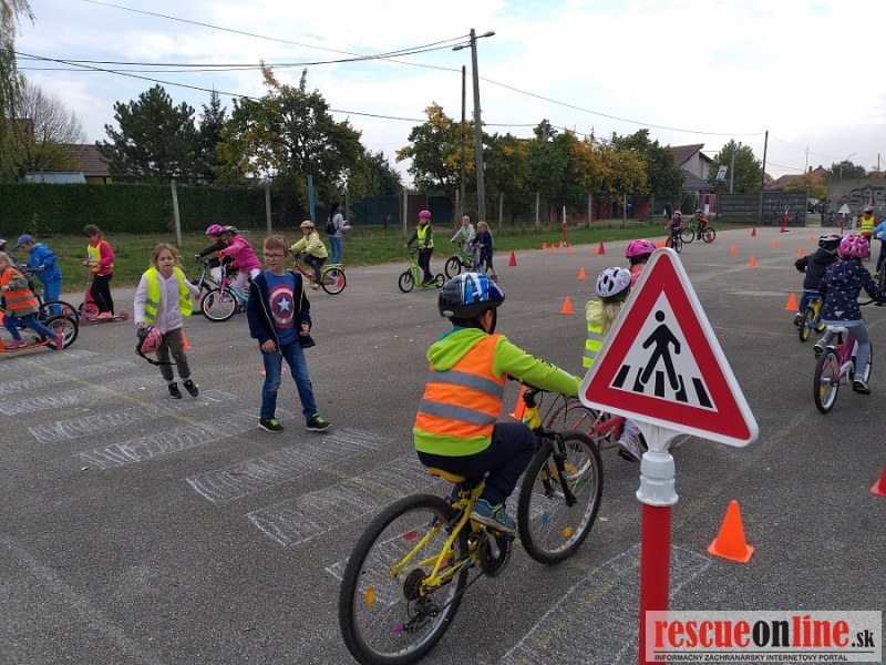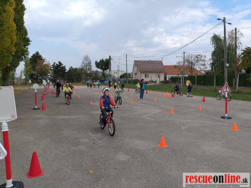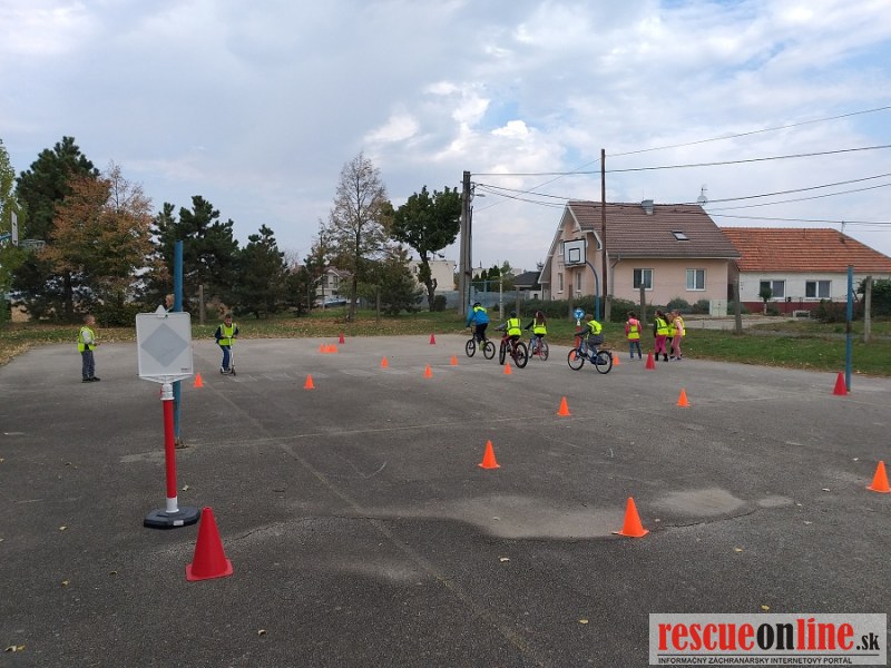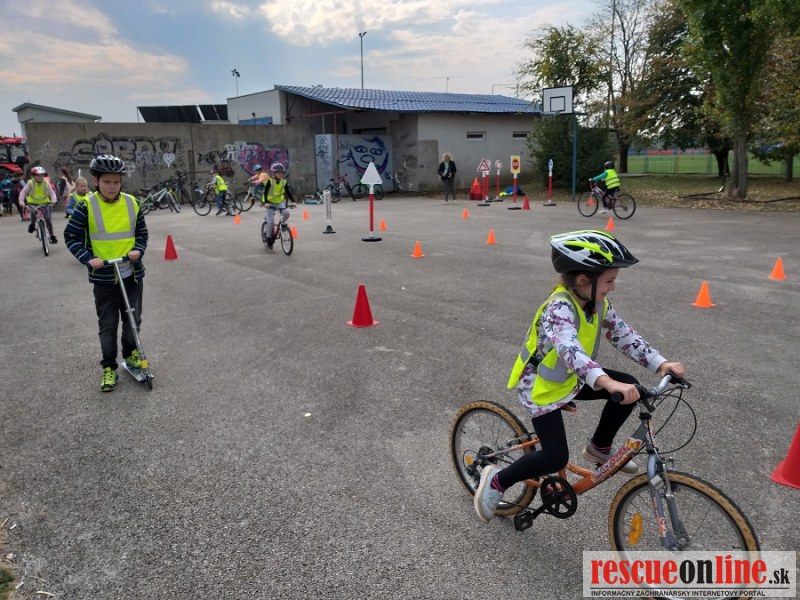 Andrea Nosická | ZŠ Pata | Školáci prvého stupňa Základnej školy v Pate si dňa 19.10.2018 precvičili dopravnú výchovu na detskom mobilnom dopravnom ihrisku "Bezpečné mesto". Po ihrisku rozloženom na betónovej časti pri TJ v Pate si na svojich dopravných prostriedkoch vyskúšali ako dodržiavať predpisy a bezpečne sa správať v cestnej premávke.