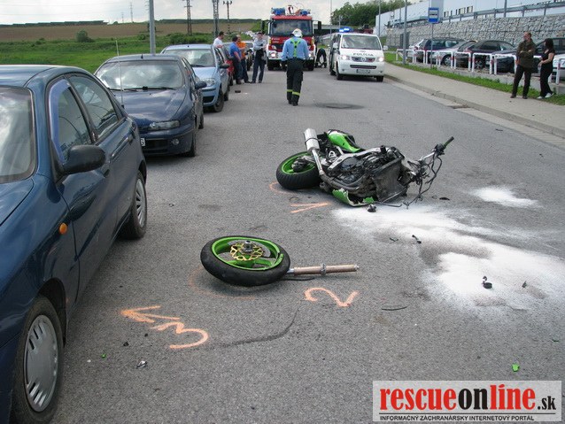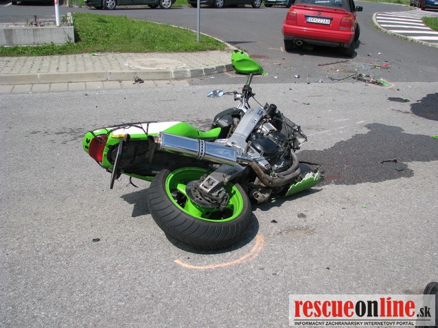 KRPZ Banská Bystrica |MM| Polícia vo Veľkom Krtíši vyšetruje dopravnú nehodu, ktorá sa stala v utorok (20.5.) okolo 13.30 hodine, v obci Malý Krtíš. 21-ročný vodič osobného motorového vozidla VW Golf z Dolných Plachtiniec, nedal prednosť motocyklu. Na rovnom úseku cesty k príjazdu na parkovisko, pri odbočovaní doľava nedal prednosť v jazde oproti idúcemu 26-ročnému vodičovi bytom Olovár, ktorý viedol motocykel Kawasaki. Vodič motocykla predným kolesom narazil do pravej zadnej časti vozidla, následkom čoho vodič motocykla preletel ponad vozidlo a zostal ležať na ceste. Pri dopravnej nehode utrpel ťažké zranenia. Pri nehode došlo aj k poškodeniu zaparkovaného vozidla Daewo Lanos. U vodičov alkohol zistený nebol. Škoda na vozidlách je odhadnutá na 4200 eur. Poverený príslušník začal trestné stíhanie pre prečin ublíženie na zdraví.