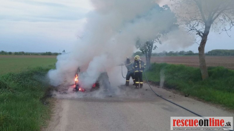 KR HaZZ Trnava |MM| Včera (17. apríla 2016) v podvečerných hodinách bol nahlásený požiar osobného motorového vozidla na ceste Cífer smer Jablonec. V čase príchodu hasičov na miesto udalosti bolo plameňom zachvátené celé vozidlo. Na likvidáciu bol nasadený jeden vysokotlakový prúd. Pravdepodobnou príčinou vzniku požiaru bola technická porucha. Na mieste udalosti zasahovali hasiči z Trnavy.