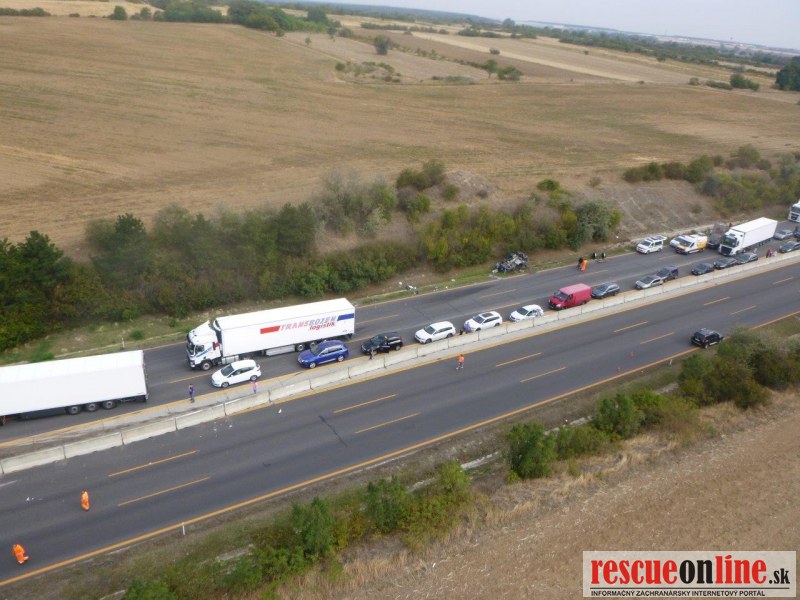 ATE |MM| K dopravnej nehode, ktorá sa stala dnes dopoludnia na diaľnici D1 v smere z Trnavy do Bratislavy bola privolaná vrtuľníková záchranná zdravotná služba z Bratislavy. Pomoc leteckých záchranárov potreboval vodič kamióna, ktorý narazil do ďalšieho kamióna. Utrpel poranenie hlavy, na okolnosti nehody si nepamätal. Záchranársky vrtuľník pristál priamo na diaľnici, ktorú vopred zabezpečili príslušníci polície. V stabilizovanom stave bol letecky prevezený na centrálny príjem Univerzitnej nemocnice Bratislava – Ružinov. V tom istom čase zasahovala posádka leteckých záchranárov z Trenčína taktiež na diaľnici D1 neďaleko Ilavy. Na mieste už zasahovali všetky záchranné zložky. Lekár leteckých záchranárov si od posádky rýchlej lekárskej pomoci na mieste prevzal vodiča osobného auta, ktoré sa nachádzalo mimo vozovky. Utrpel poranenia viacerých častí tela, najmä hlavy. Na umelej pľúcnej ventilácií bol s vážnym poranením hlavy leteckým záchranármi prevezený do Univerzitnej nemocnice v Martine. Jeho spolujazdec ostal v starostlivosti pozemných záchranárov.