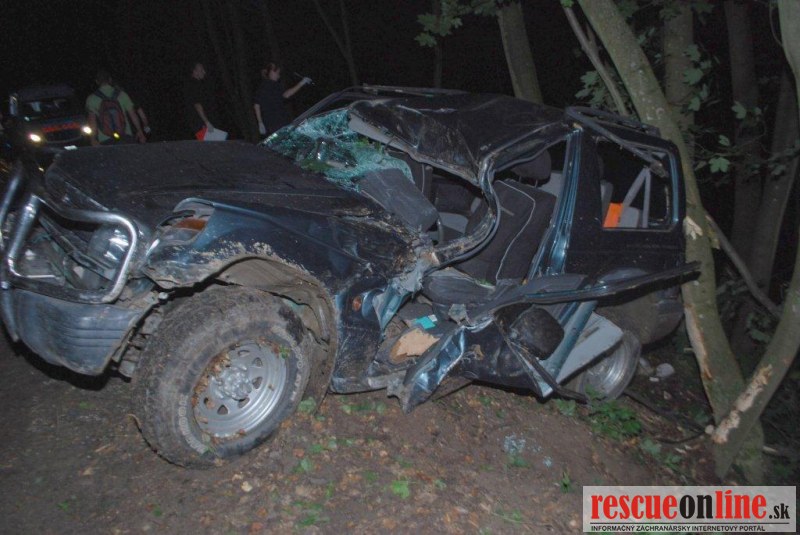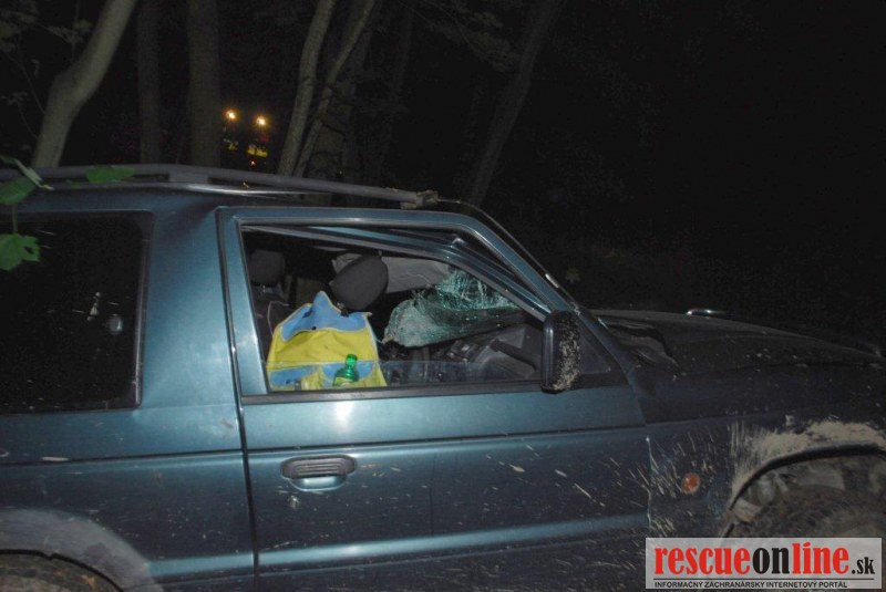 KRPZ Trnava |MM| Hlohovskí policajti boli privolaní k nálezu havarovaného auta Mitsubischi Pajero v k. ú. obce Jalšové na lesnej ceste. Na udalosť upozornil v nedeľu, 3. 6. približne o 20.00 h náhodný okoloidúci, ktorý zraneným mužom privolal cez linku 112pomoc. Podľa informácií sa mali v aute nachádzať niekoľko desiatok minút dve zakliesnené osoby s vážnymi zraneniami. Policajti na mieste zistili totožnosť mužov aj približné okolnosti udalosti. Podľa vyjadrenia sa mal 52 ročný muž zoznámiť s 31 ročným mužom a spolu mali popíjať celú nedeľu. Potom sa starší muž ponúkol mladšiemu, že ho odvezie domov. Cestou cez les nezvládol riadenie a narazil do stromov. Policajti podrobili muža dychovej skúške na alkohol, pri ktorej mu namerali 0,59 mg/l, čo je 1,23 promile alkoholu v dychu. Zranenia oboch mužov si vyžiadali okamžitý transport do trnavskej nemocnice. Podľa predbežných výsledkov by sa zo zranení mali zotavovať 2-3 týždne. V čase nehody sa vo vozidle nachádzal aj pes, plemena Československý vlčiak, ktorého polícia za asistencie hliadky mestskej polície umiestnila dočasne do útulku pre zvieratá. Poverený policajt začal vo veci trestné stíhanie pre prečin ublíženia na zdraví.