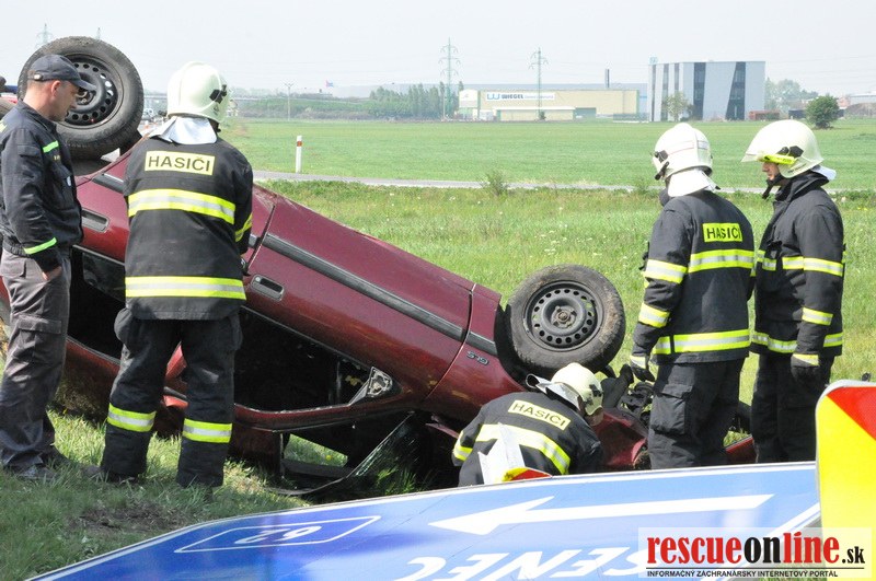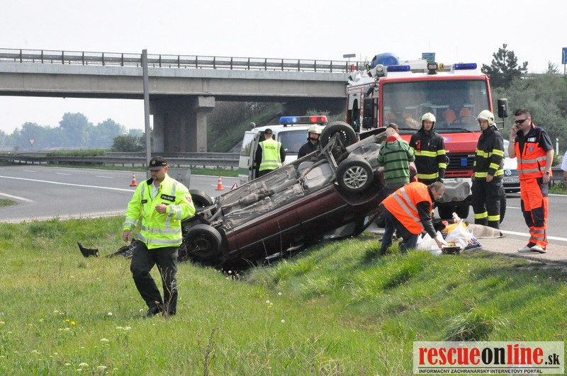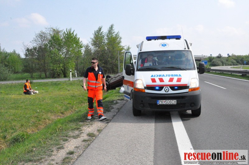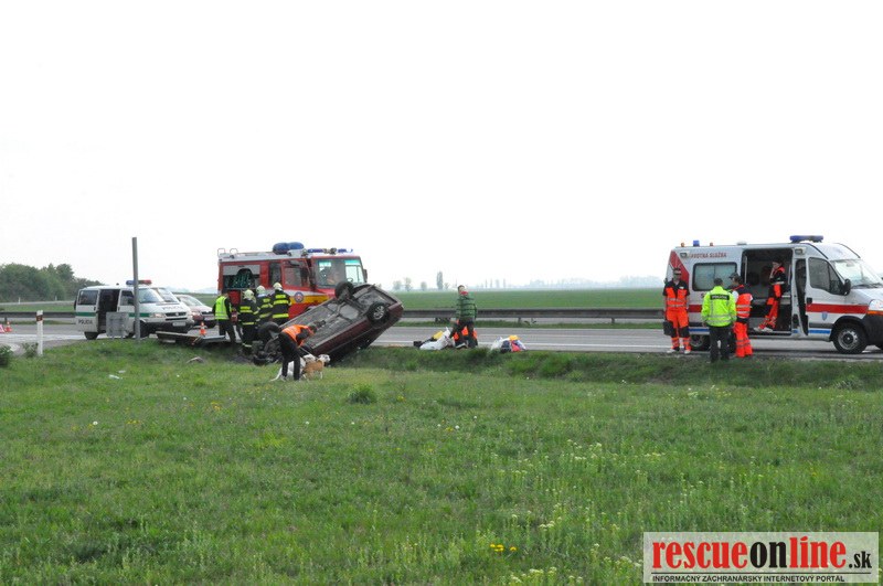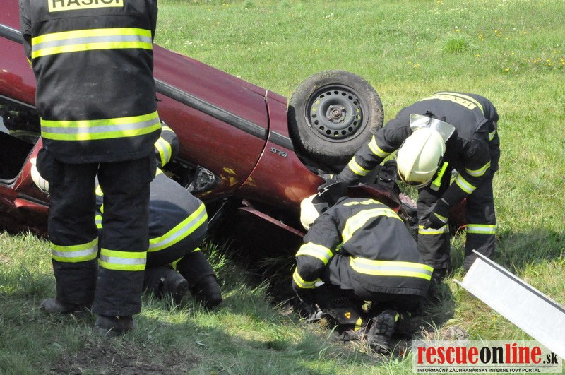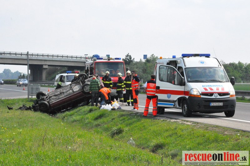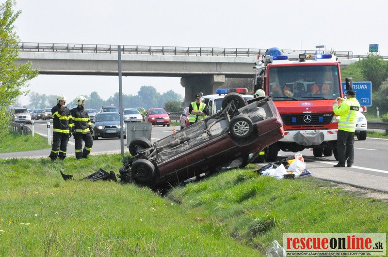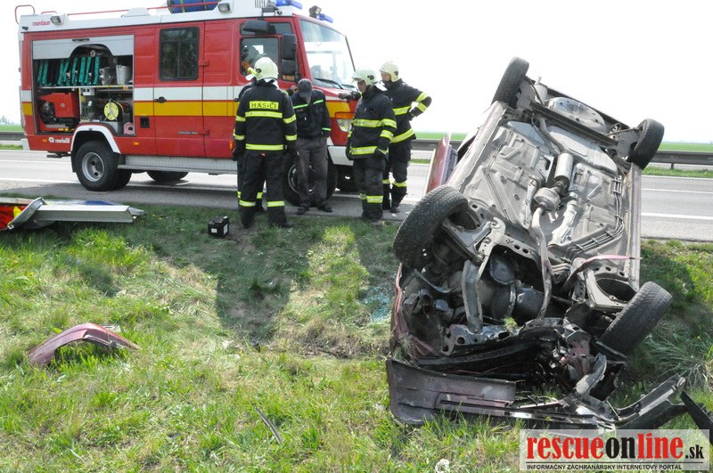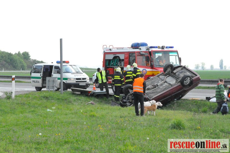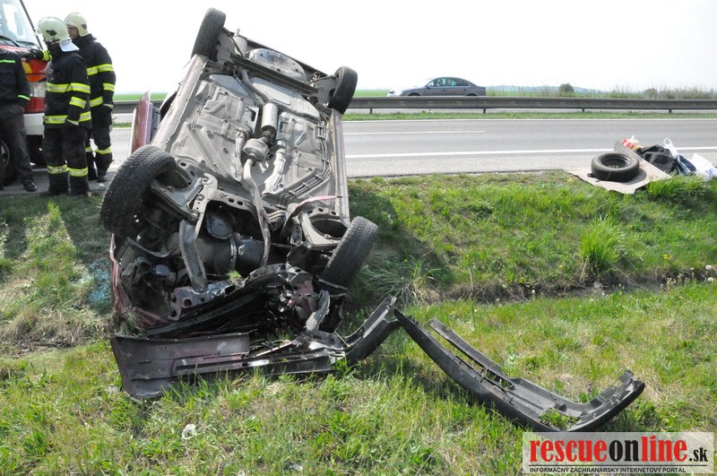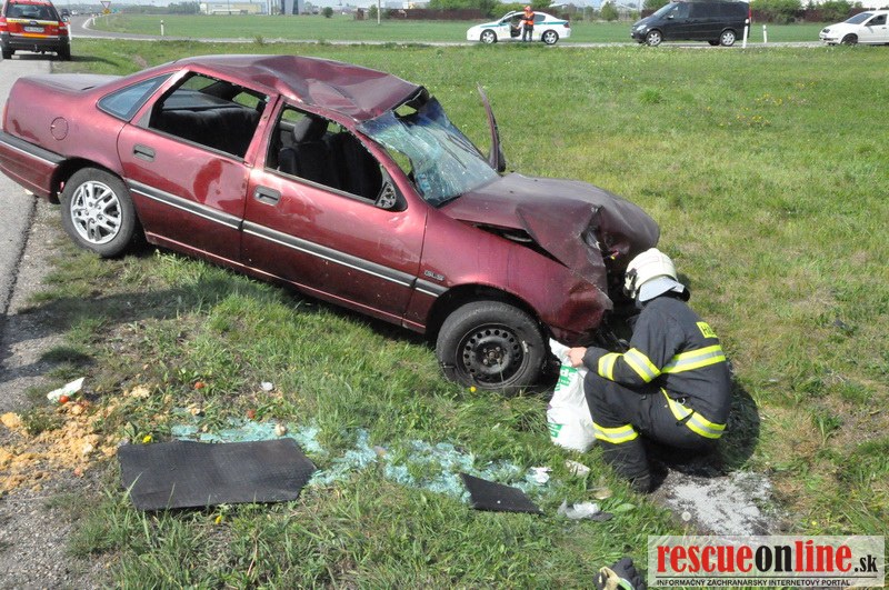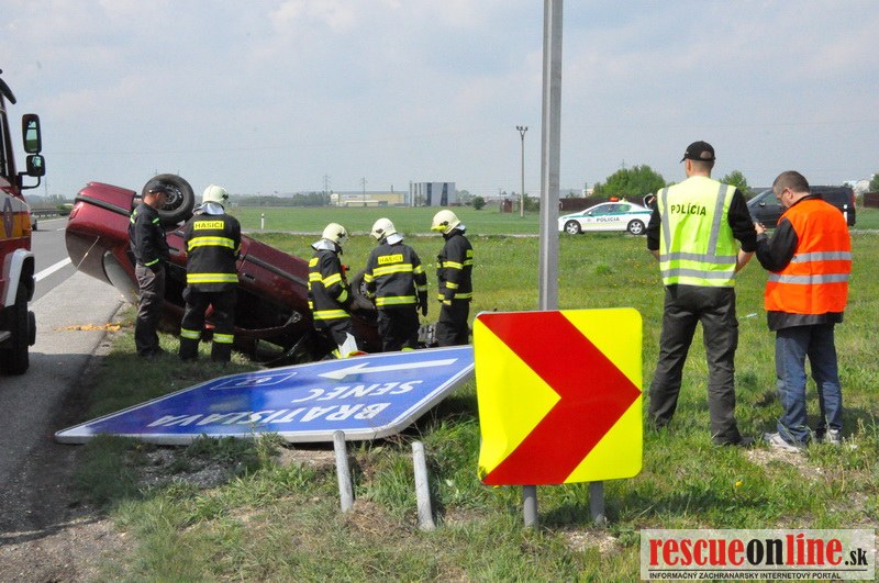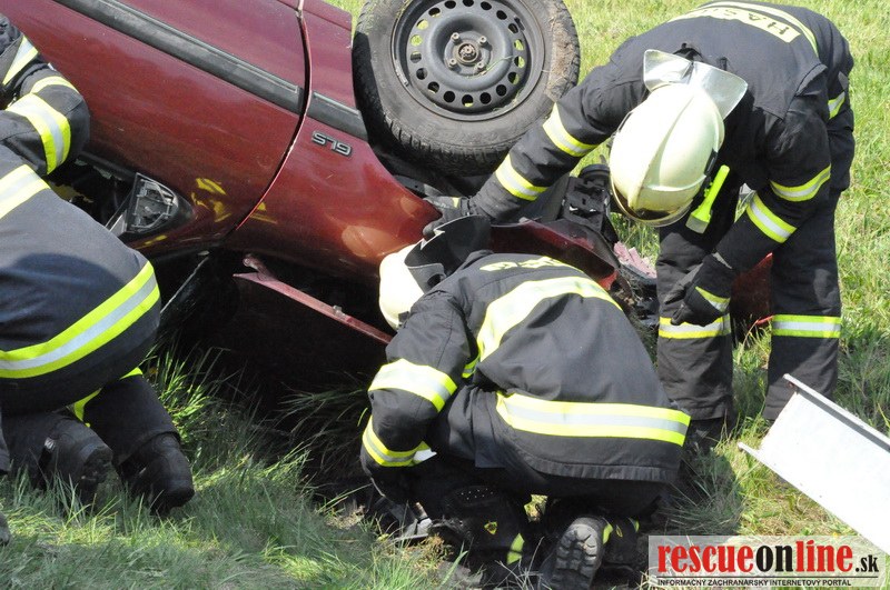 Sereď | R1 | Asi o 14. hodine popoludní bola na tiesňovú linku HaZZ v Galante nahlásená dopravná nehoda na R1 za Sereďou (za Milexom). Do dopravného značenia narazilo a tabuľu vyvalilo osobné motorové vozidlo, ktoré po náraze skončilo mimo vozovku a na streche. Na miesto udalosti bola vyslaná jednotka HaZZ zo Serede, vozidlo RZP s osádkou a dopravná polícia. Miesto nehody zabezpečovalo viacej hliadok PZ. Zranená osoba bola sanitným vozidlom odvezená do nemocnice. Vo vozidle sa nachádzali aj dvaja psi, ktorí vyviazli bez zranení. Polícia príčiny dopravnej nehody vyšetruje. Premávka na R1 v smere z Nitry do Trnavy bola po dobu odstraňovania následkov nehody obmedzená čiastočne.