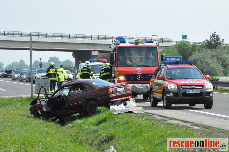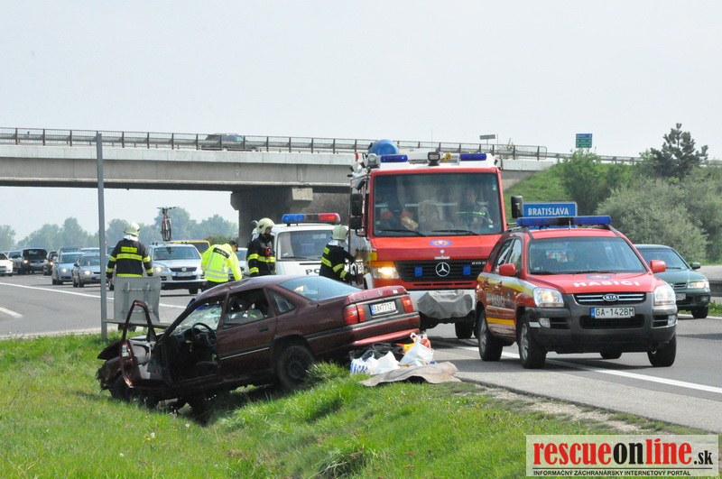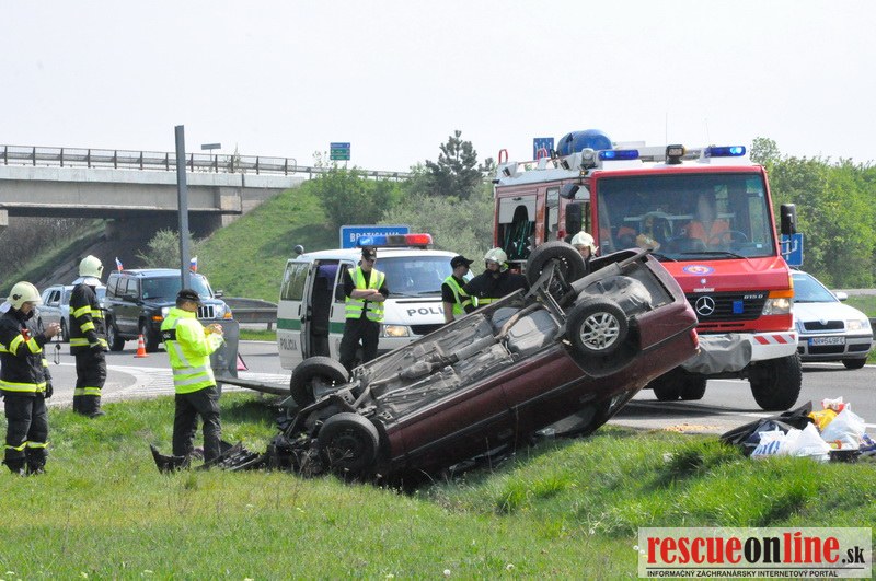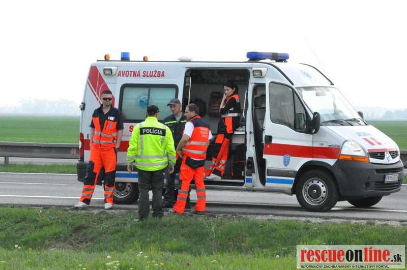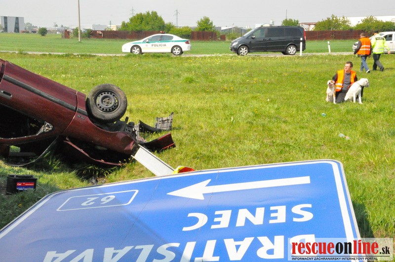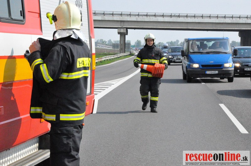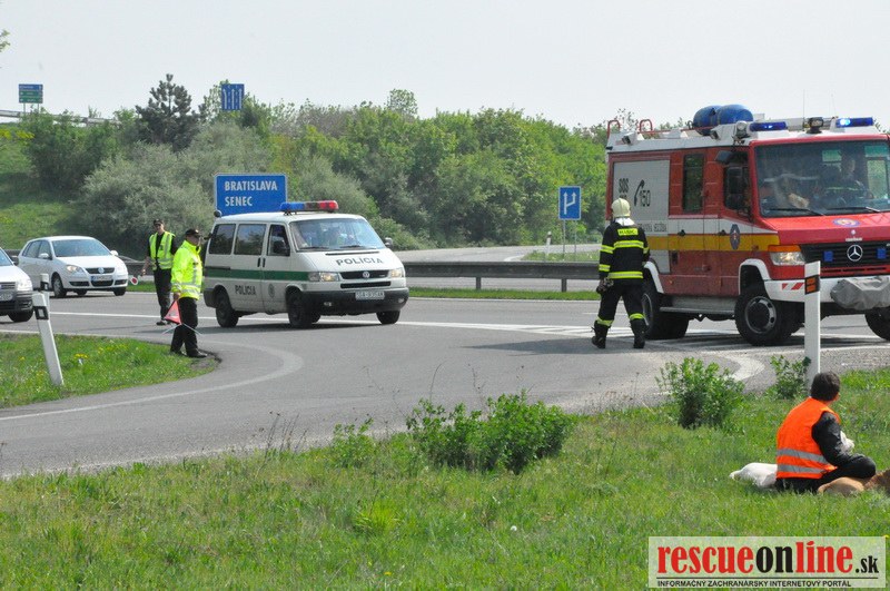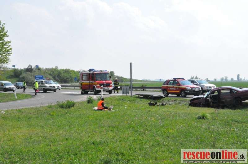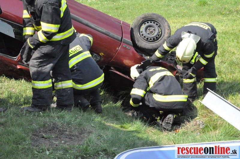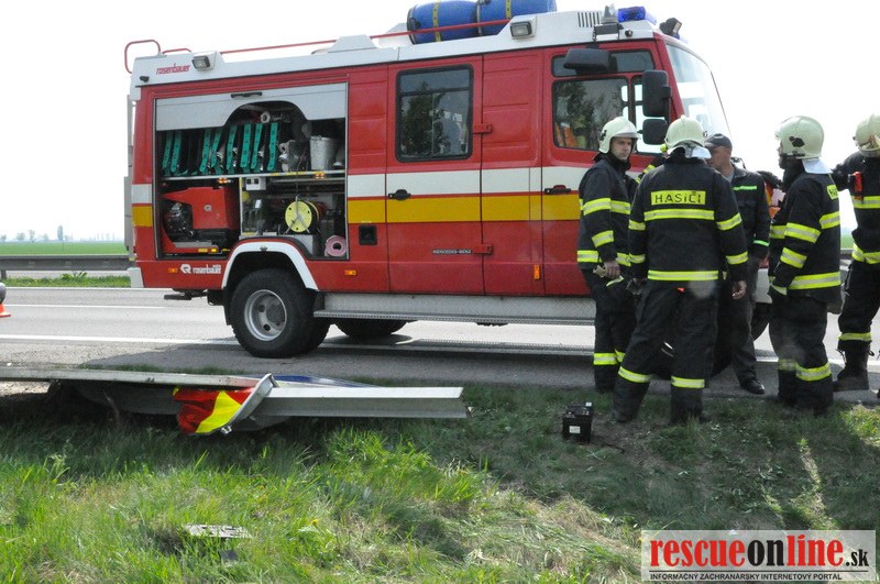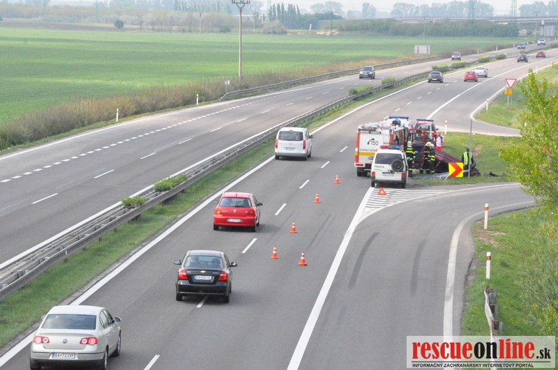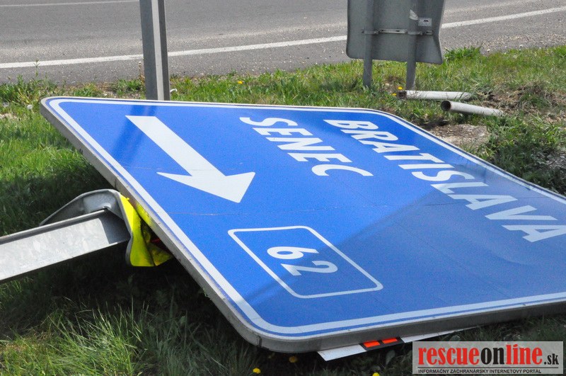 Sereď | R1 | Asi o 14. hodine popoludní bola na tiesňovú linku HaZZ v Galante nahlásená dopravná nehoda na R1 za Sereďou (za Milexom). Do dopravného značenia narazilo a tabuľu vyvalilo osobné motorové vozidlo, ktoré po náraze skončilo mimo vozovku a na streche. Na miesto udalosti bola vyslaná jednotka HaZZ zo Serede, vozidlo RZP s osádkou a dopravná polícia. Miesto nehody zabezpečovalo viacej hliadok PZ. Zranená osoba bola sanitným vozidlom odvezená do nemocnice. Vo vozidle sa nachádzali aj dvaja psi, ktorí vyviazli bez zranení. Polícia príčiny dopravnej nehody vyšetruje. Premávka na R1 v smere z Nitry do Trnavy bola po dobu odstraňovania následkov nehody obmedzená čiastočne.