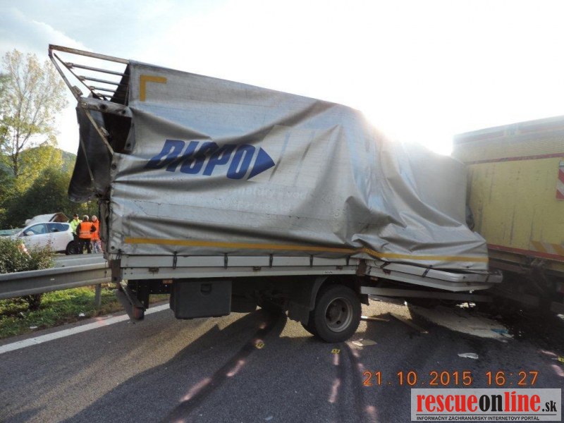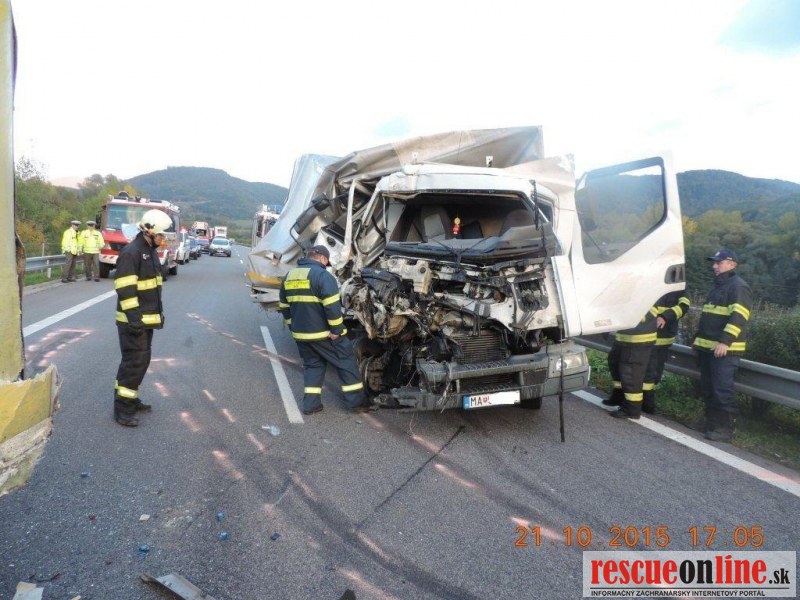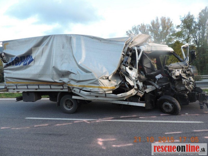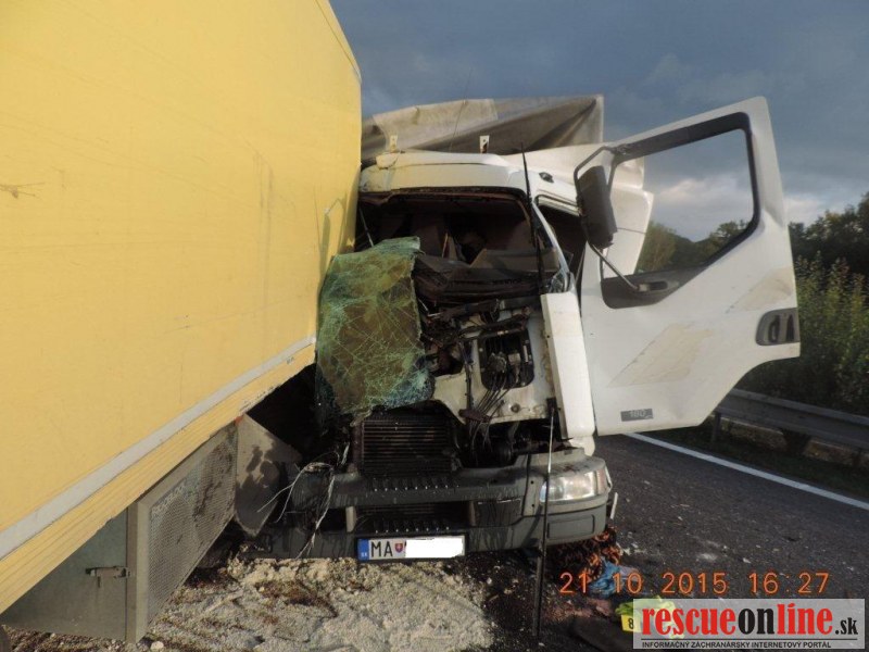 KRPZ Banská Bystrica |MM| Diaľničná polícia vyšetruje dopravnú nehodu, ktorá sa stala v stredu (21.10.) o 13.45 hodine, na rýchlostnej ceste R1, v úseku medzi obcou Nová Baňa a Hronský Beňadik. K dopravnej nehode došlo tak, že 52-ročný vodič z Malaciek, viedol nákladné motorové vozidlo Renault v smere Nová Baňa – Nitra. Z doposiaľ nezistených príčin narazil do nákladného motorového vozidla Iveco, ktoré po náraze odhodilo do zvodidiel a 57-ročný vodič vozidla Iveco z okresu Galanta, neskôr na mieste dopravnej nehody z doposiaľ nezistených príčin zomrel. U vodiča Renaultu bola dychová skúška na alkohol negatívna, utrpel zranenia s ktorými bol prevezený do nemocnice. U nebohého bude prítomnosť alkoholu zisťovaná pri pitve. Z dôvodu realizácie nehody bola cesta R1 v úseku Nová Baňa - Hronský Beňadik uzatvorená v čase od 14. 00 do 18. 20 hodiny. Škoda na vozidlách je odhadnutá na 10-tisíc eur.