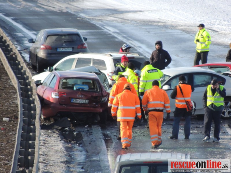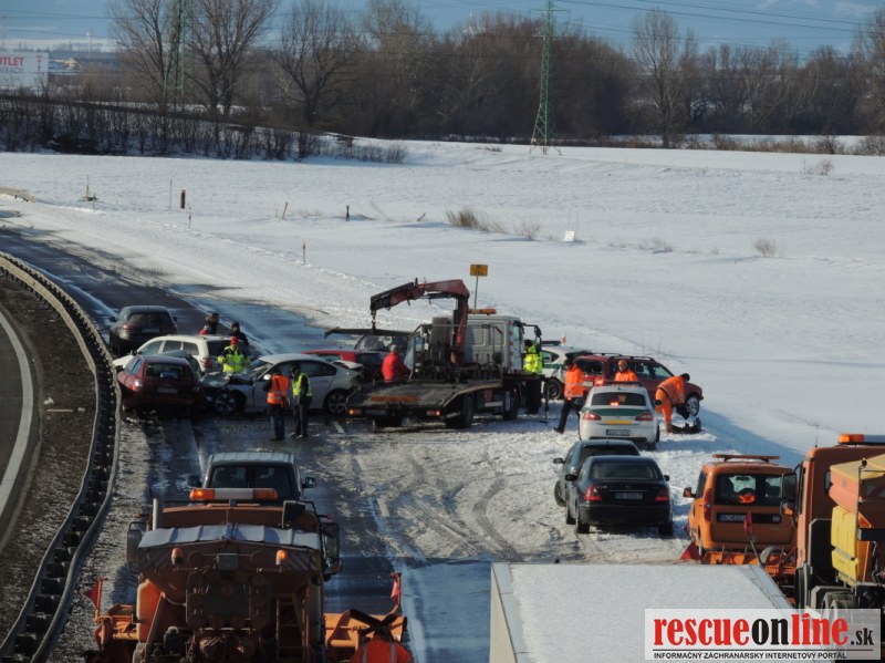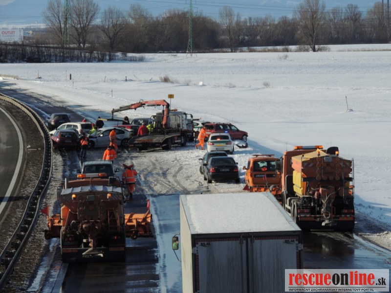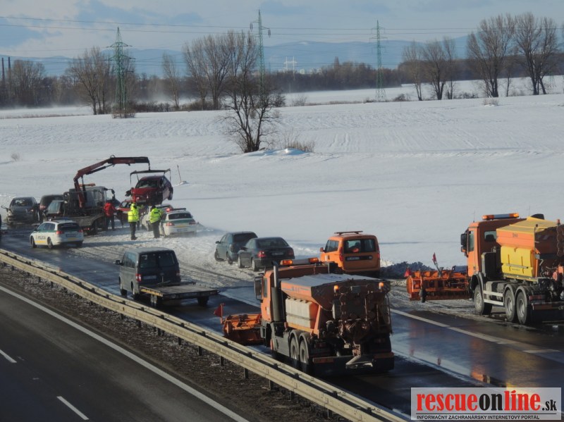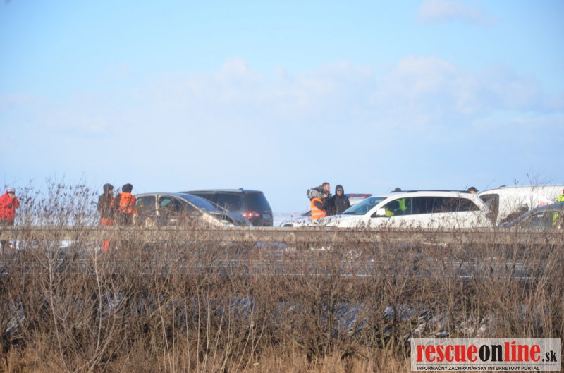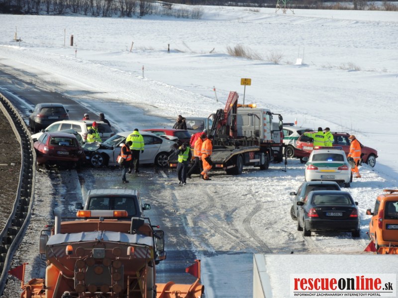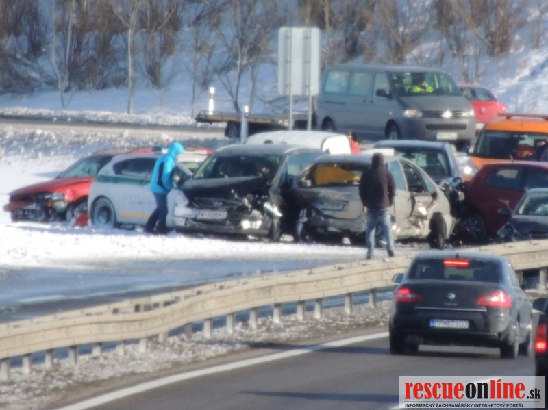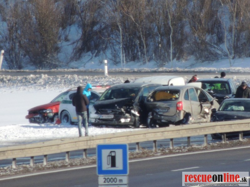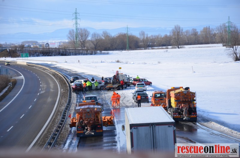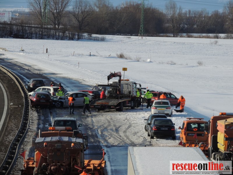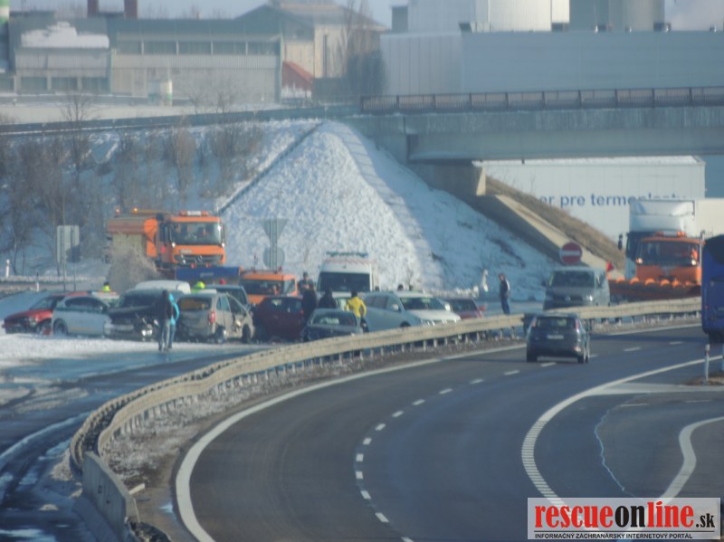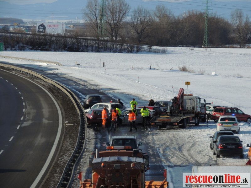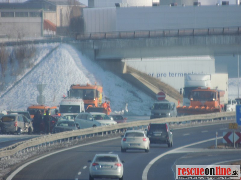 Sereď | Na výjazde z mesta Sereď v pripájacom pruhu na R1 v smere do Trnavy došlo k vážnej dopravnej nehode. Mimo vozovky a vo zvodidlách skončilo niekoľko osobných áut, ktoré pravdepodobne nezvládli prejazd zle upraveným povrchom pripájacieho pruhu resp. rýchlostnej komunikácie R1. Zo strany rolí fúka silný vietor, ktorý vytvára na ceste nepravidelnú snehovú pokrývku, snehové jazyky a záveje. Na mieste v súčasnej dobe zasahujú záchranári a predmetnú časť komunikácie prišlo upraviť niekoľko odhrňačov správcu komunikácie.