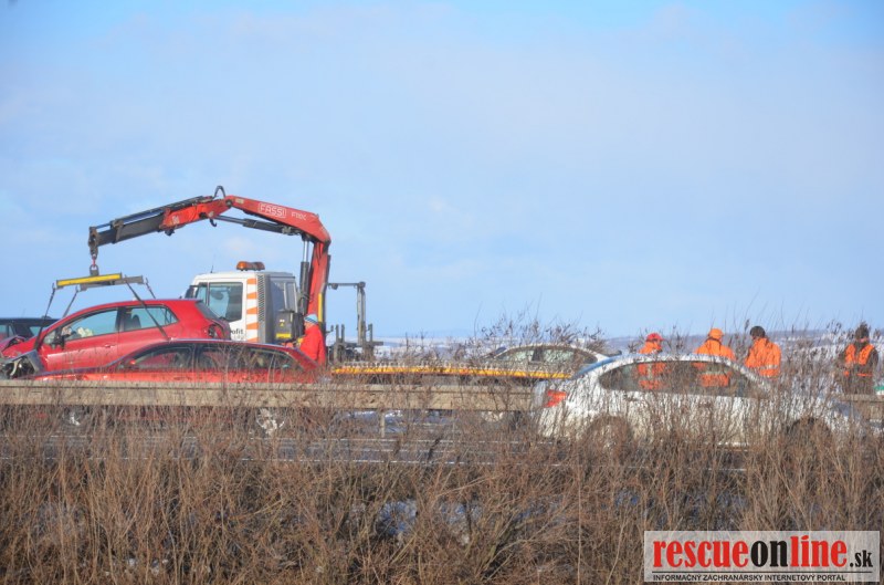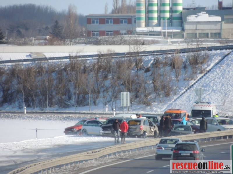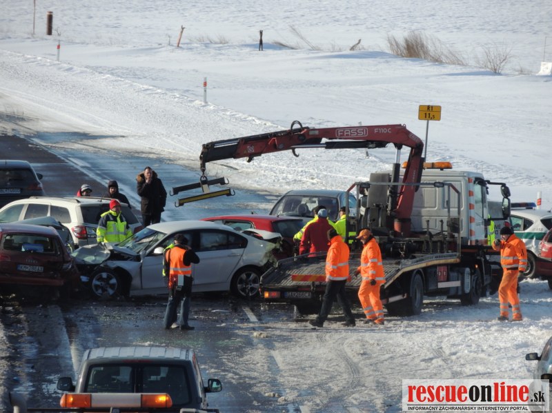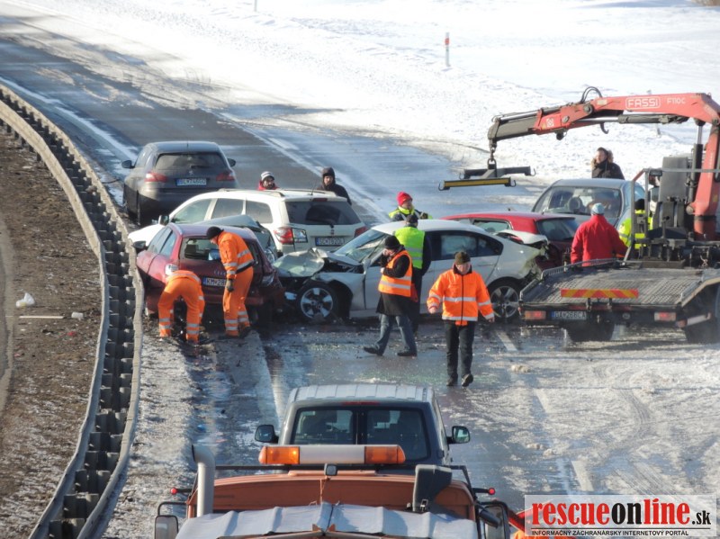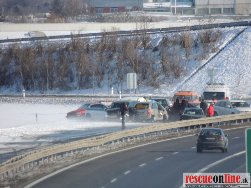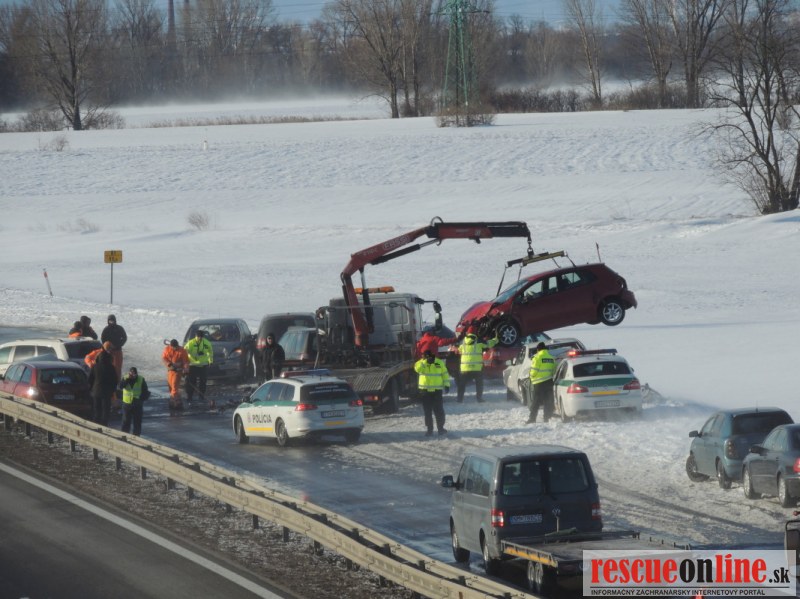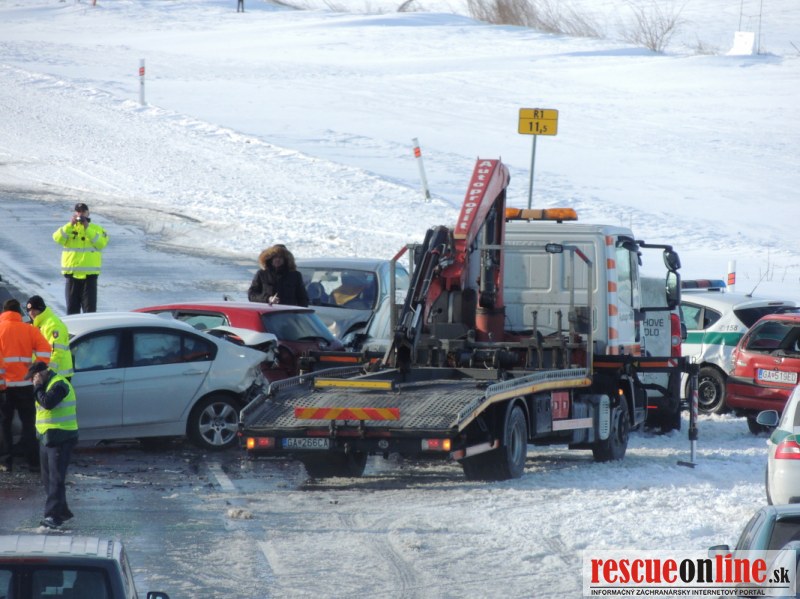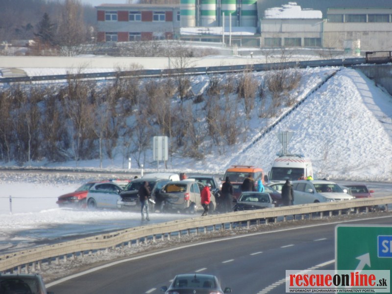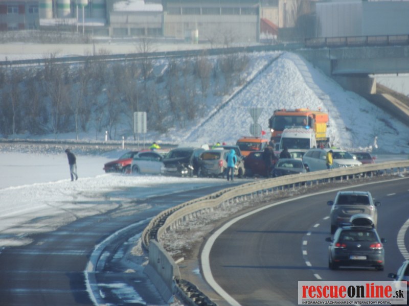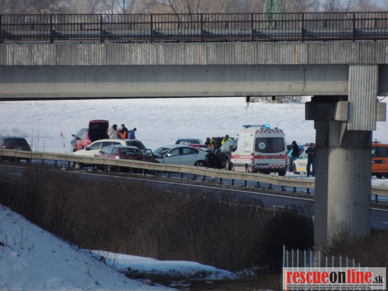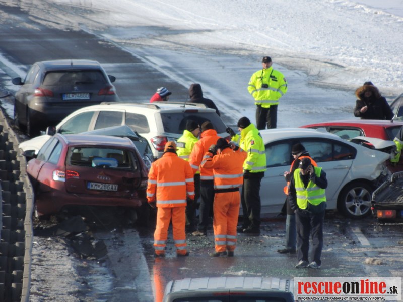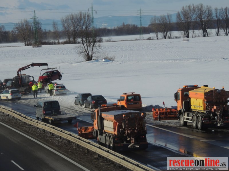 Sereď | Na výjazde z mesta Sereď v pripájacom pruhu na R1 v smere do Trnavy došlo k vážnej dopravnej nehode. Mimo vozovky a vo zvodidlách skončilo niekoľko osobných áut, ktoré pravdepodobne nezvládli prejazd zle upraveným povrchom pripájacieho pruhu resp. rýchlostnej komunikácie R1. Zo strany rolí fúka silný vietor, ktorý vytvára na ceste nepravidelnú snehovú pokrývku, snehové jazyky a záveje. Na mieste v súčasnej dobe zasahujú záchranári a predmetnú časť komunikácie prišlo upraviť niekoľko odhrňačov správcu komunikácie.