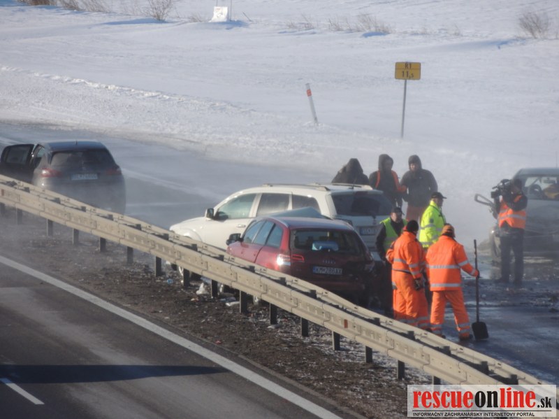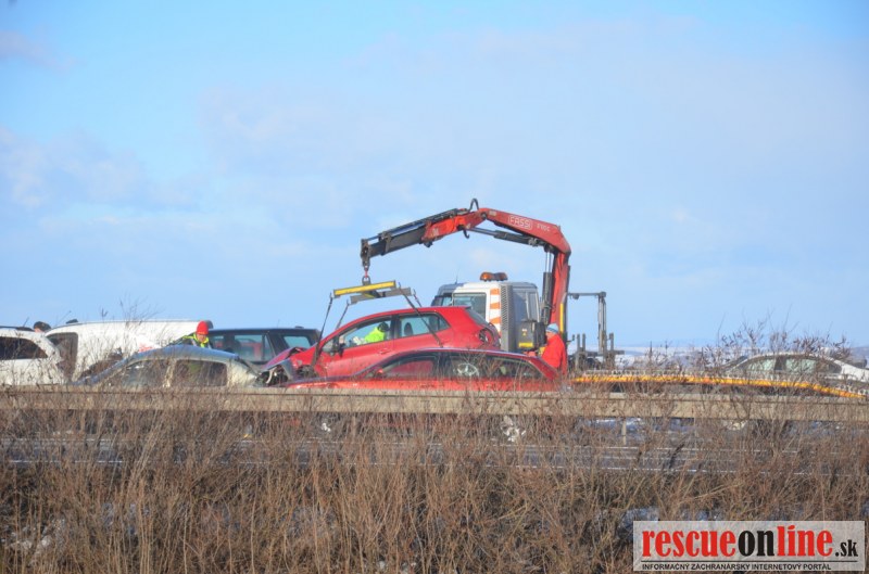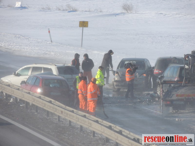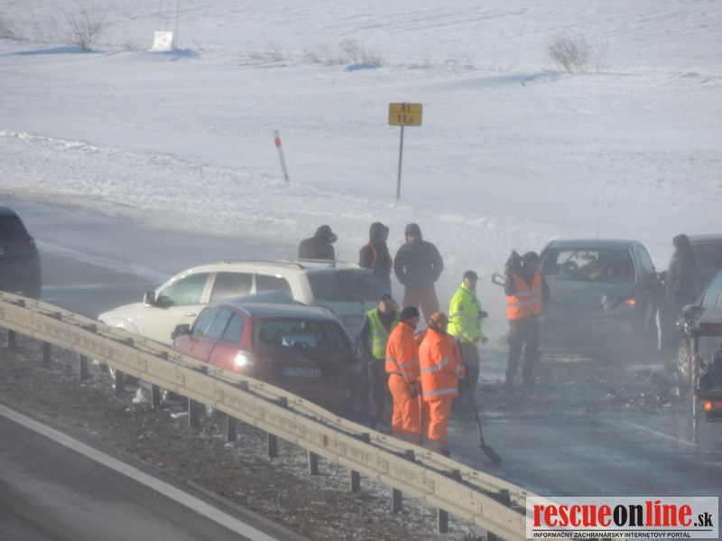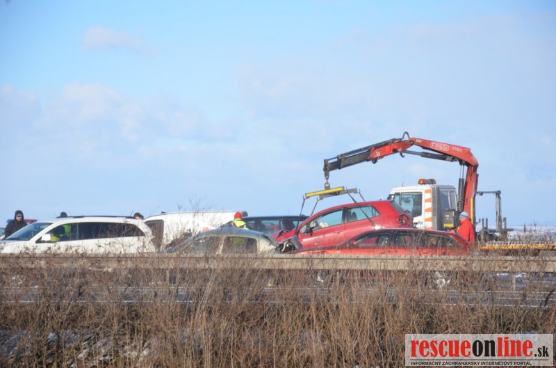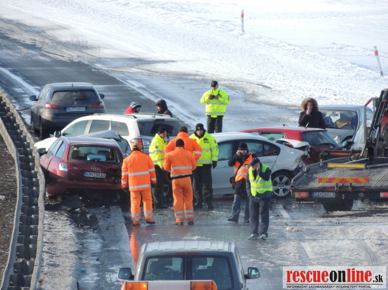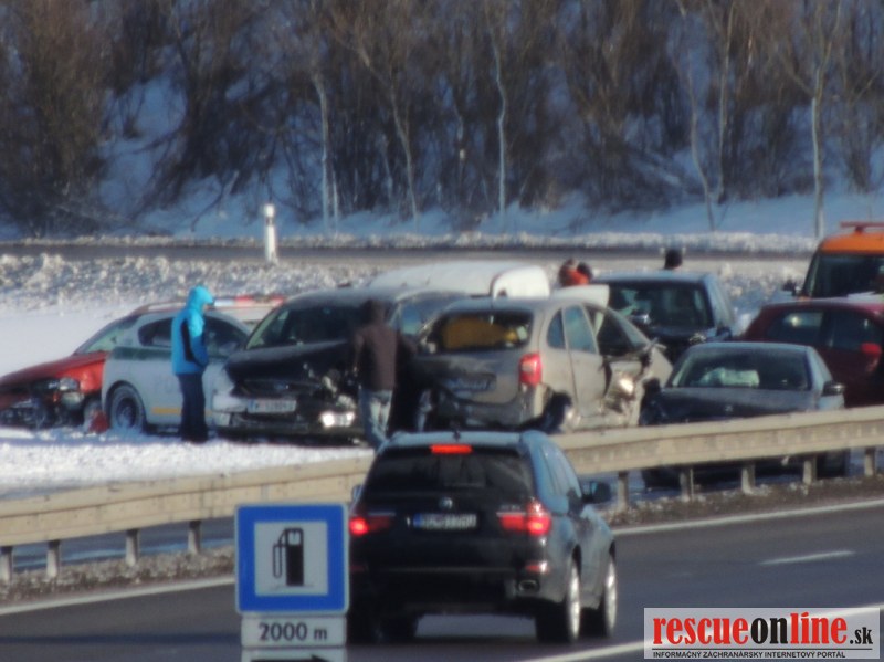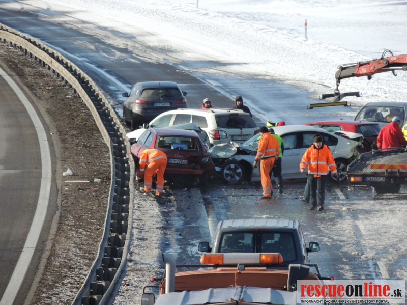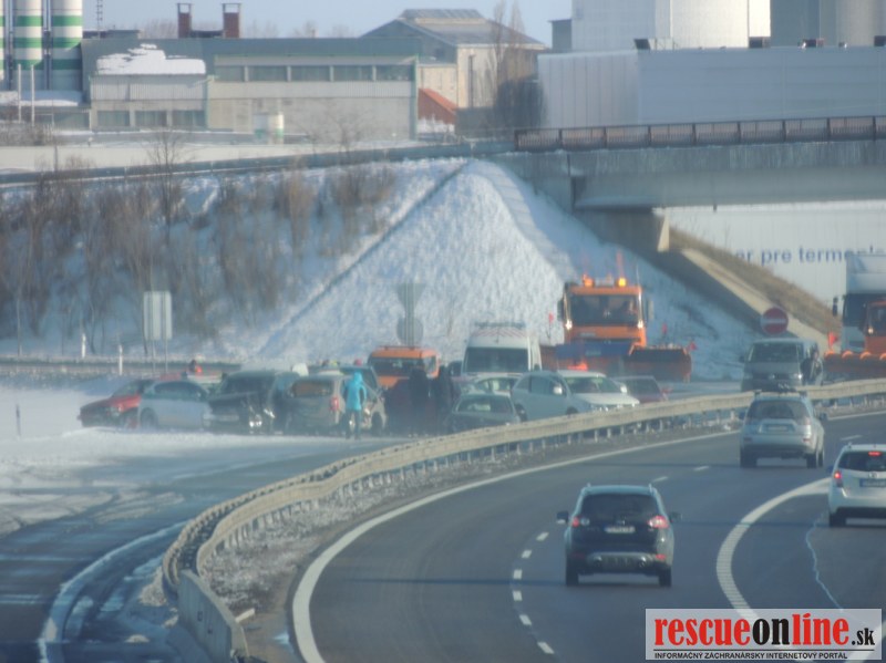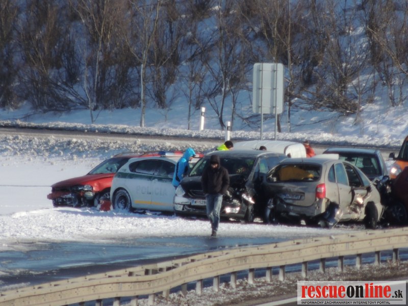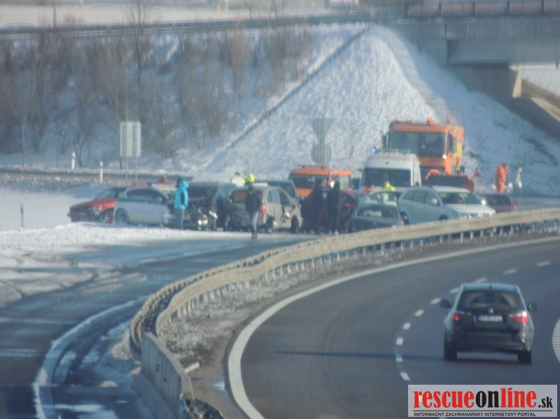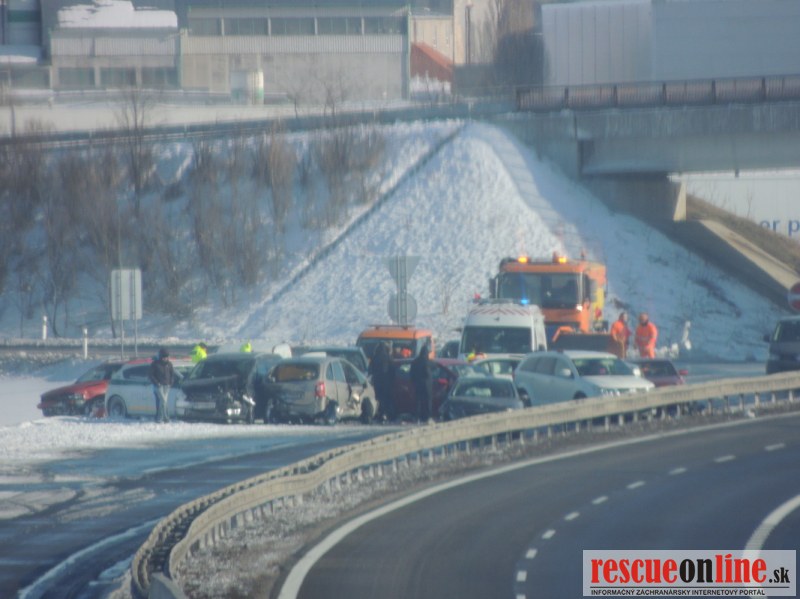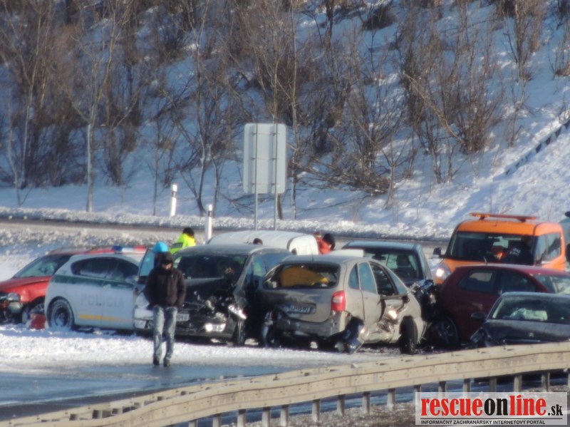 Sereď | Na výjazde z mesta Sereď v pripájacom pruhu na R1 v smere do Trnavy došlo k vážnej dopravnej nehode. Mimo vozovky a vo zvodidlách skončilo niekoľko osobných áut, ktoré pravdepodobne nezvládli prejazd zle upraveným povrchom pripájacieho pruhu resp. rýchlostnej komunikácie R1. Zo strany rolí fúka silný vietor, ktorý vytvára na ceste nepravidelnú snehovú pokrývku, snehové jazyky a záveje. Na mieste v súčasnej dobe zasahujú záchranári a predmetnú časť komunikácie prišlo upraviť niekoľko odhrňačov správcu komunikácie.
