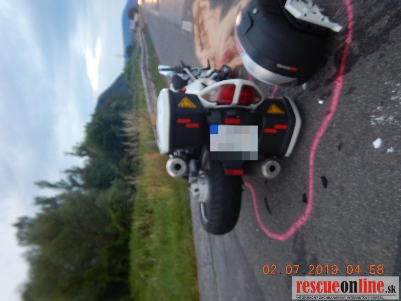 KRPZ Banská Bystrica |MM| Podľa doterajšieho objasňovania k nehode došlo tak, že 61-ročný vodič dodávkového vozidla prichádzal v smere od Banskej Bystrice, pričom pri odbočovaní vľavo z hlavnej cesty smerom do Slovenskej Ľupče nedal prednosť protiidúcemu, od Brezna prichádzajúcemu motocyklistovi. Po zrážke motocykel odrazilo do protismernej časti a spadol na zem. 31-ročný motocyklista bol z miesta nehody záchranármi odvezený na ošetrenie. Podľa predbežných vyjadrení lekárov by nemalo ísť našťastie o žiadne vážnejšie zranenia. Dopravná nehoda je v štádiu objasňovania.