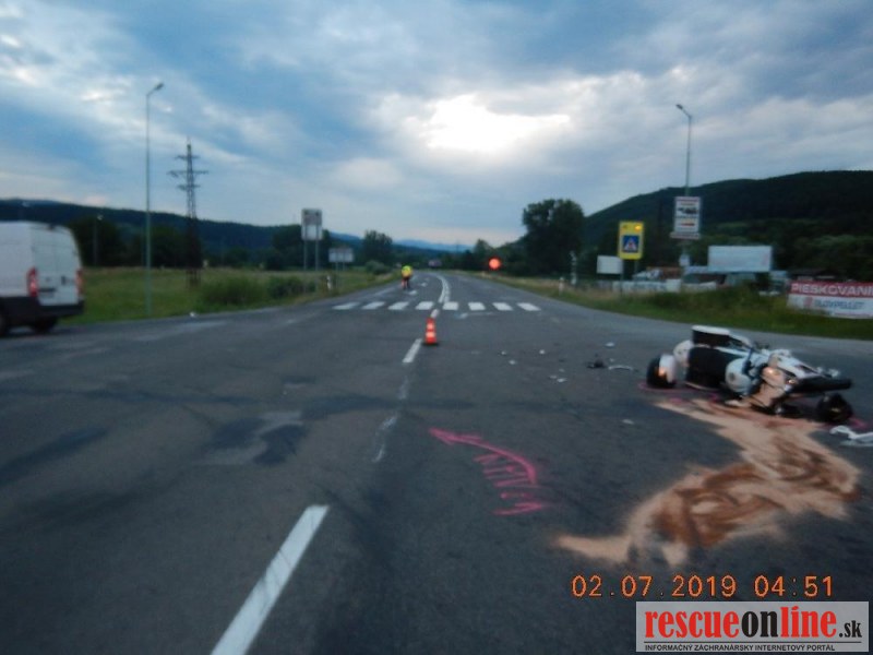 Nadránom zasahovali záchranné zložky na ceste pri Slovenskej Ľupči. Došlo k nehode dodávky s motocyklom.