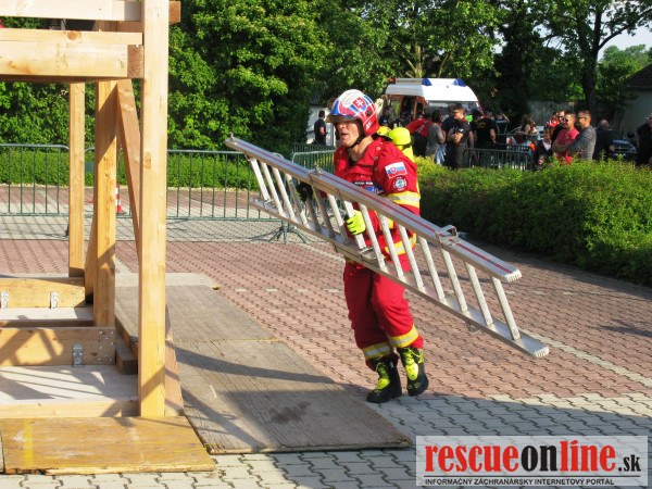 Súťažiaci si museli v jednej z disciplín poradiť aj s inštaláciou hasičského rebríka, a tiež vyniesť v obidvoch rukách 15 kilogramovú záťaž po schodoch do približne 8,5 metra vysokej trojpodlažnej veže. Tam mali za úlohu vytiahnuť zo zeme 2 hadice „B“. Disciplíny súťažiaci plnili v hasičskej výstroji, ktorá sa skladá z hasičskej prilby (váha cca 1,5 kg), hasičského zásahového kabáta a nohavíc (váha cca 4 kg) a zásahovej hasičskej obuvi (váha cca 2,5 kg). V troch zo štyroch súťažných disciplín používali aj autonómny dýchací prístroj (váha cca 15 kg).