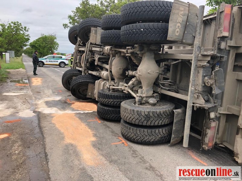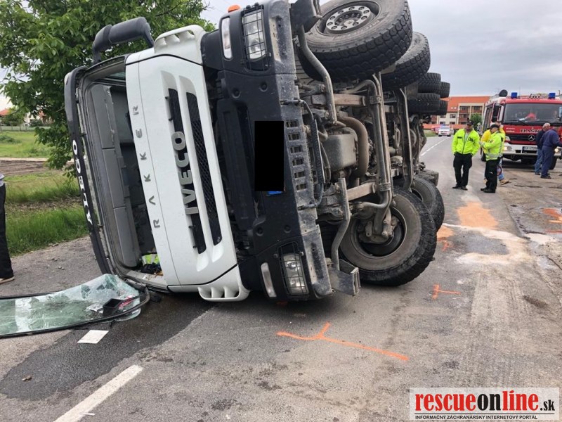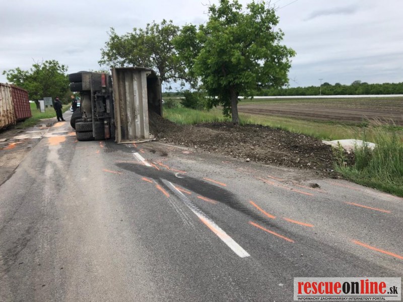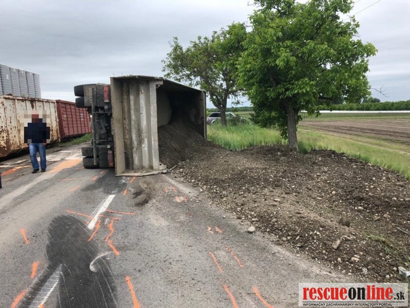 KRPZ Trnava |MM| V obci Veľké Úľany došlo včera dopoludnia k prevráteniu nákladného auta naloženého zeminou. Vodič bol prevezený na ošetrenie, dychovou skúškou mu nebolo zistené požitie alkoholu. Keďže nákladné auto tvorilo prekážku v cestnej premávke, polícia vykonávala odklon dopravy cez Sládkovičovo.