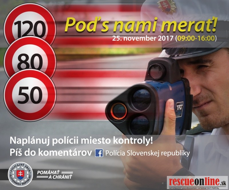 Od 13. do 16. novembra 2017 môžete všetci navrhovať miesta a úseky ciest, na ktorých bude prebiehať akcia „Poď s nami merať!“. Všetky potrebné informácie k zasielaniu návrhov nájdete na stránke Ministerstva vnútra Slovenskej republiky http://www.minv.sk/?tlacove-spravy-2&sprava=naplanuj-policii-miesto-kontroly-pod-s-nami-merat.