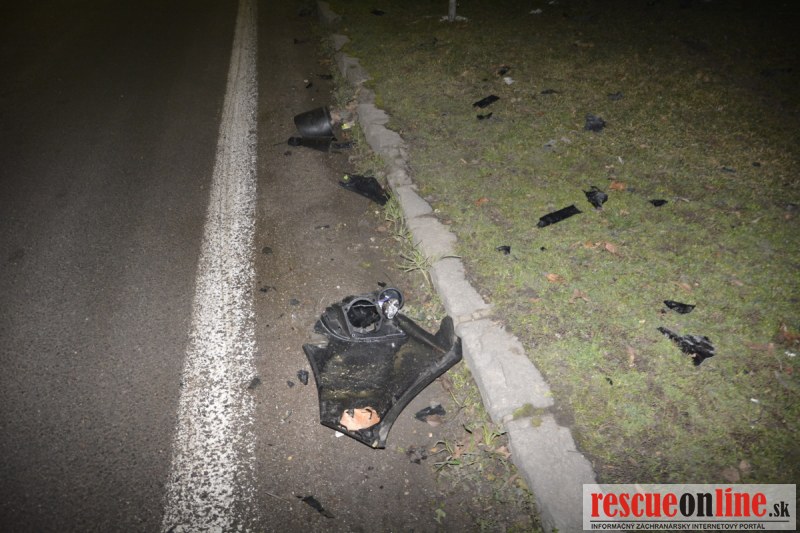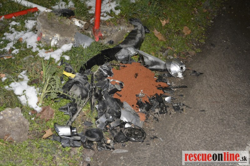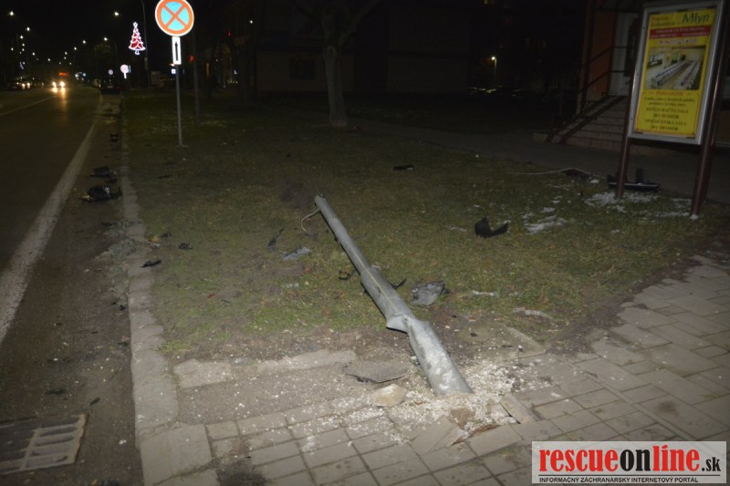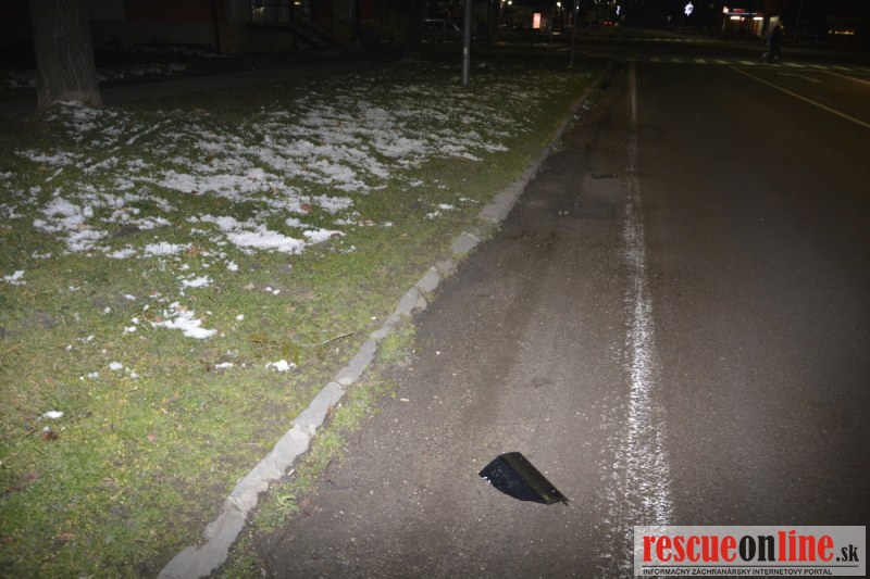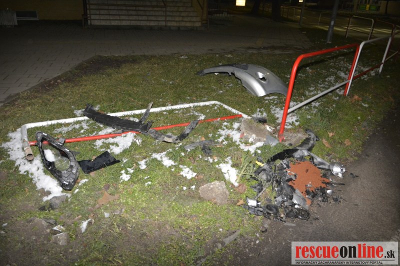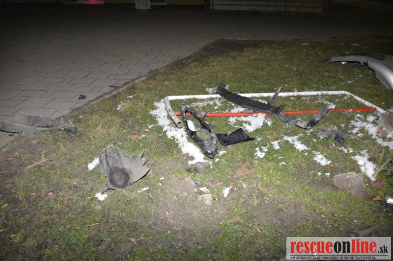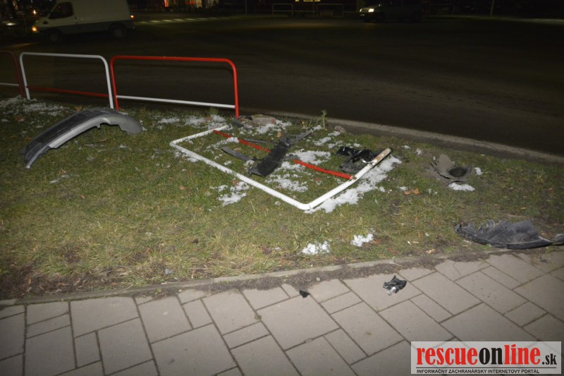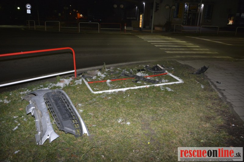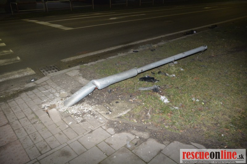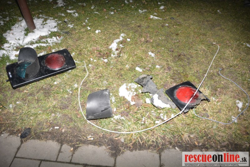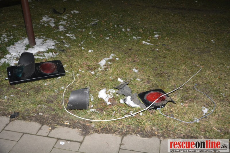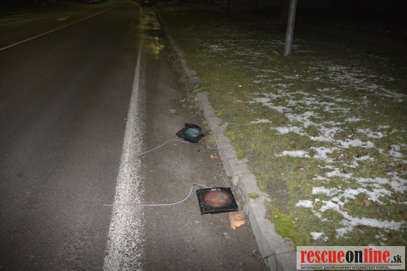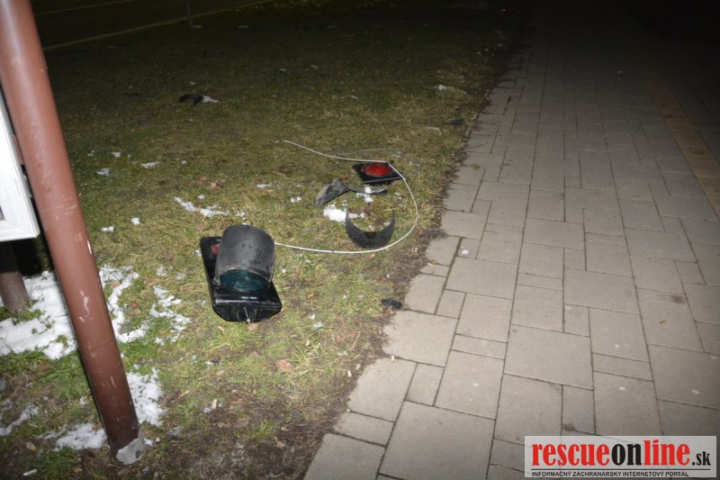 Následky včerajšej havárie - zostatky rozbitého semaforu a časti havarovaného auta sú doteraz na verejnom priestranstve