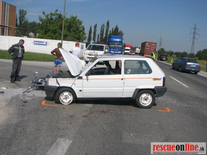 KRPZ Trnava |MM| Policajti v týchto dňoch obvinili 31 ročného muža z Veľkého Medera (okr. Dunajská Streda) z prečinu usmrtenia. Obvinený muž, začiatkom septembra, viedol osobné auto Fiat Panda po ceste I/63 od Veľkého Medera na Dunajskú Stredu. Pri odbočovaní doľava, nedal prednosť oproti idúcemu motocyklu Honda VT1100, ktoré riadil 46 ročný občan Nemeckej republiky a následne prišlo k zrážke. V tom čase sa na motocykli viezla aj 33 ročná spolujazdkyňa z Ohrád (okr. Dunajská Streda). Pri zrážke vodič motocykla utrpel zranenia, ktorým po prevoze do nemocnice podľahol. Jeho spolujazdkyňa utrpela ťažké zranenia. 31 ročný vodič Fiatu utrpel početné odreniny tváre a hlavy. Na vozidlách vznikla škoda 7500,-€. Vodičovi Fiatu policajti dychovou skúškou namerali 0,16 promile alkoholu. Obvinenému mužovi hrozí za tento skutok trest odňatia slobody na dva až päť rokov.