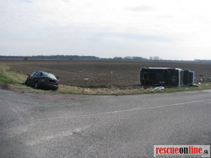 KRPZ Trnava |MM| Polícia vyšetruje dopravnú nehodu, ktorá sa stala 19. marca, krátko pred desiatou hodinou, na križovatke ciest I/63 a III/57211 pri obci Vieska (okr. Dunajská Streda). 26 ročný muž z Dunajskej Stredy viedol vozidlo Mercedes od obce Vieska. Na križovatke nedal prednosť a vošiel do jazdnej dráhy osobnému autu Škoda, ktoré viedol 57 ročný muž z Dunajskej Stredy. Vodič Škody už zrážke zabrániť nedokázala a prednou časťou narazil do pravej bočnej časti Mercedesu, ktorý sa následne prevrátil na pravý bok. Vodič Mercedesu pri dopravnej nehode utrpel zranenia, ktoré si vyžiadali jednorazové ošetrenie. 77 ročná spolujazdkyňa zo Škodovky utrpela ťažké zranenia a z miesta dopravnej nehody ju odviezla letecká záchranná služba. Tretí člen posádky Škody, 25 ročný muž, utrpel zranenia, ktoré si vyžiadali jednorazové ošetrenie. Vodič Škodovky zranenia neutrpel. Alkohol u vodičov zistený nebol. Na vozidlách vznikla škoda 8000,-€. Vo veci bolo začaté trestné stíhanie pre ublíženie na zdraví. V prípade obvinenia konkrétnej osoby hrozí za tento skutok trest odňatia slobody na jeden až päť rokov.