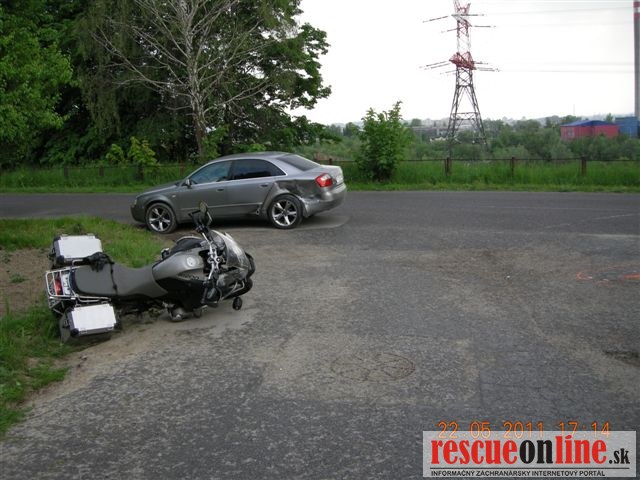 KR PZ Žilina |MM| V nedeľu podvečer došlo k dopravnej nehode s účasťou 46 ročného nemeckého motocyklistu. 21 ročný vodič na vozidle Audi A4 jazdiaci po ceste III. triedy v smere od obce Lipovec k neoznačenej komunikácii v obci Turčianske Kľačany odbočoval na vedľajšiu cestu v čase keď bol predchádzaný 46 ročným motocyklistom. Došlo k stretu oboch vozidiel. Následkom nárazu utrpel motocyklista zranenia s dobou liečenia nad 2 mesiace. Alkohol u vodičov polícia nezistila. Okolnosti nehody vyšetruje polícia.