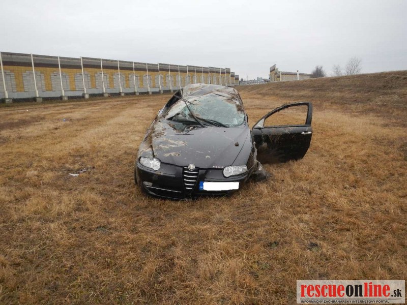 Nehoda na R1 vo Vlčkovciach - vozidlo skončilo mimo cesty