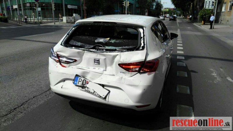 Nehodu spôsobil vodič nákladného vozidla, ktorý pravdepodobne prehliadol Seat stojaci na svetelnej križovatke na červenej a odzadu do neho narazil.