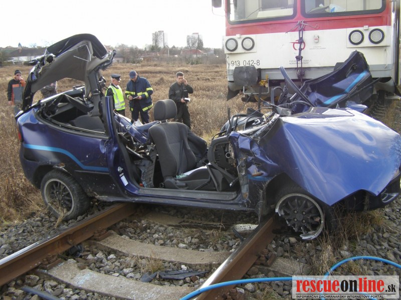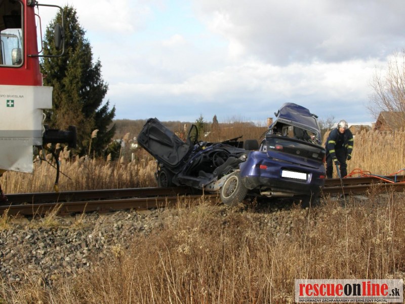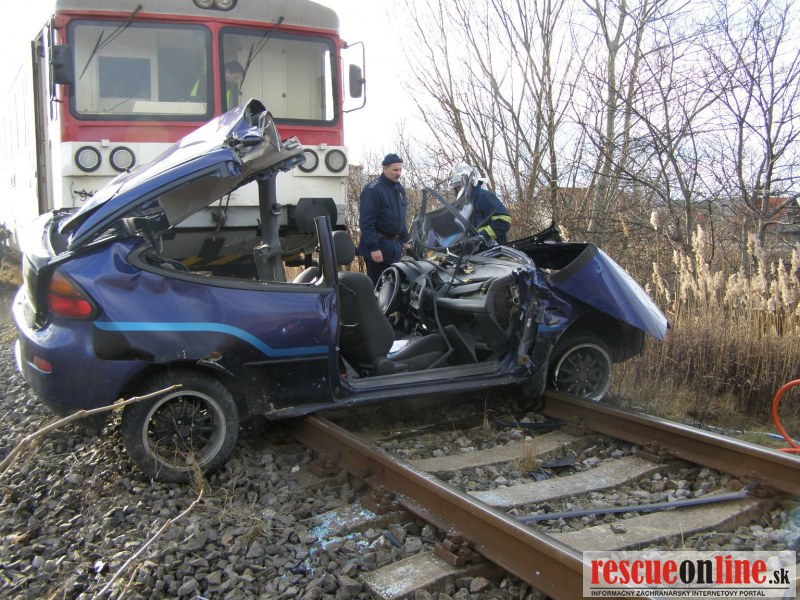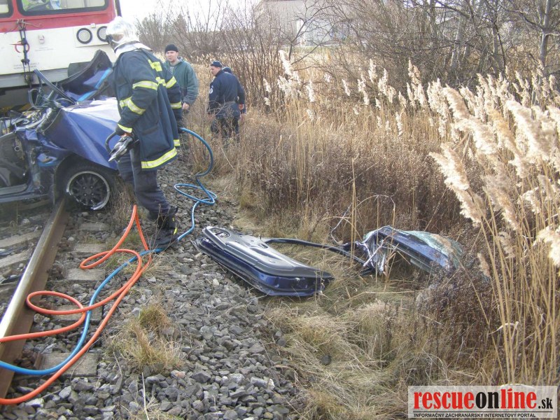 KR HaZZ Trnava |MM| V pondelok 23. januára 2012 o 13:26 hod. bola ohlásená dopravná nehoda osobného motorového vozidla a osobného motorového vlaku č. 2414 na železničnom priecestí v meste Holíč, Lesná ul., okres Skalica. Na miesto udalosti boli vyslaní z hasičskej stanice Holíč vyslaní štyria príslušníci HaZZ s technikou MB Atego a MB Vario Po príjazde na miesto udalosti bolo prieskumom zistené, že osobné motorové vozidlo Mazda 323 je zakliesnene pod prednou časťou vlaku a vo vozidle, v časti ktorá sa nachádzala pod vlakom, sa nachádza ťažko zranená, celá zakrvavená zakliesnená osoba /20 ročný vodič/ pri vedomí. Aby bolo vozidlo možné vyslobodiť spod vlaku a tak sa dostať lepšie k zranenej osobe, príslušníci HaZZ odstránili z vraku pravé dvere a strechu a ostatne časti boli podvihnuté. Potom bol vlak za pomoci auto navijaku opatrne odtiahnutý a tým bolo vytvorené miesto pre prístup k zranenej osobe z ľavej strany. Následne boli odstránené ľavé dvere a bolo zistené, že zranená osoba je schopná transportu na nosidlách do sanitného vozidla. Zasahujúci príslušníci vyslobodili zranenú osobu z havarovaného vozidla pomocou hydraulického vyslobodzovacieho zariadenia, poskytli zranenej osobe predlekársku prvú pomoc a pomohli ho naložiť do vozidla Zdravotnej záchrannej služby. Havarovaný automobil zabezpečili proti vzniku požiaru, odtiahli ho z miesta nehody a pod vozidlom uniknuté prevádzkové kvapaliny boli zasypané sorbentom. Na miesto udalosti sa dostavila dopravná polícia Senica a Inšpekcia ŽSR. Po zadokumentovaní udalosti a odtiahnutí vlaku z miesta udalosti iným vlakom boli príslušníci HaZZ požiadaní o odtiahnutie vraku vozidla zo železničnej trate až k ceste. Vozidlo bolo ťahané pomocou navijaku postupne až na komunikáciu k odťahovej službe. Po ukončení zásahu sa jednotka HaZZ o 15:57 hod. vrátila na základňu.