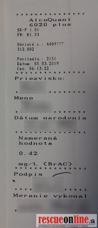 KRPZ Žilina |MM| V utorok 5. marca pred šiestou hodinou ráno operačné stredisko Krajského riaditeľstva Policajného zboru v Žiline prijalo na linke 158 oznámenie o krádeži motorového vozidla Škoda Octavia v obci Zákopčie, okres Čadca. Okamžite po prijatí oznámenia operačné stredisko prijalo všetky opatrenia za účelom vypátrania motorového vozidla. Po vozidle pátrali všetky dostupné policajné hliadky. Asi za 10 minút volal oznamovateľ krádeže opäť na linku 158. Oznámil, že vozidlo už našiel, lebo zabudol, kde ho zaparkoval. Z uvedeného dôvodu bolo pátranie po vozidle odvolané. Do pátrania po motorovom vozidle bola zapojená aj policajná hliadka z Obvodného oddelenia Policajného zboru Čadca. Tá po šiestej hodine ráno, už po zrušení pátrania, spozorovala na ceste tretej triedy medzi obcami Zákopčie a Raková, okres Čadca predmetné osobné motorové vozidlo Škoda Octavia idúce nekoordinovanou jazdou. Z uvedeného dôvodu motorové vozidlo zastavila. Počas kontroly sa 34 ročný vodič (z okresu Čadca) podrobil dychovej skúške s pozitívnym výsledkom 0,42 mg/l (0,88 promile) alkoholu vo vydychovanom vzduchu. Policajti vodičovi na mieste zadržali vodičský preukaz a zakázali mu ďalšie jazdu. Za uvedený priestupok možno uložiť v správnom konaní pokutu od 150.-€ do 800.-€ a zákaz činnosti do troch rokov.