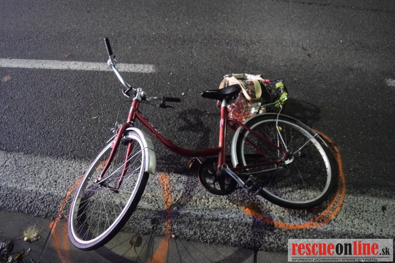 KRPZ Trnava |MM| Dopravní policajti boli v piatok, 21. 10. privolaní k nehode pri nákupnom centre v Hlohovci. K nehode došlo o 21.40 h na Ulici Nitrianskej v smere od Nitry na Trnavu. 18 ročná mladá vodička išla na aute Ford Focus, keď z nezistených príčin narazila prednou časťou auta do zadnej časti bicykla. Pri nehode sa ťažko zranila 61 ročná miestna cyklistka, ktorá bola prevezená do trnavskej nemocnice. Vážnym zraneniam v sobotu v noci podľahla. Polícia podrobila ženu dychovej skúške na alkohol, ktorá bola negatívna. Okolnosti ako aj presné príčiny nehody vyšetruje polícia ako prečin usmrtenia.