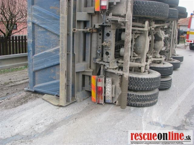 Neupevnený náklad spôsobil prevrátenie nákladného auta