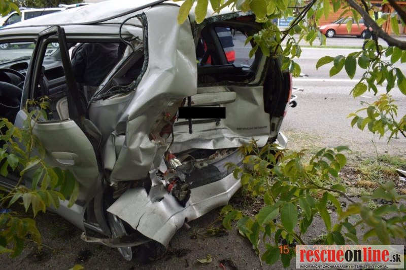 Pri nehode došlo k zraneniu osádky Mitsubishi – 68 ročný vodič a jeho 65 ročná manželka.