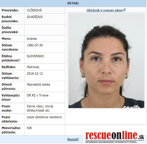 Nezvestná Andrea Vlčeková: Polícia navrhla obžalobu troch osôb z pozbavenia osobnej slobody