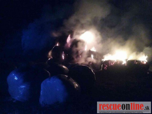 Nočný požiar balíkov slamy v obci Hrachovo