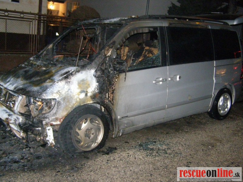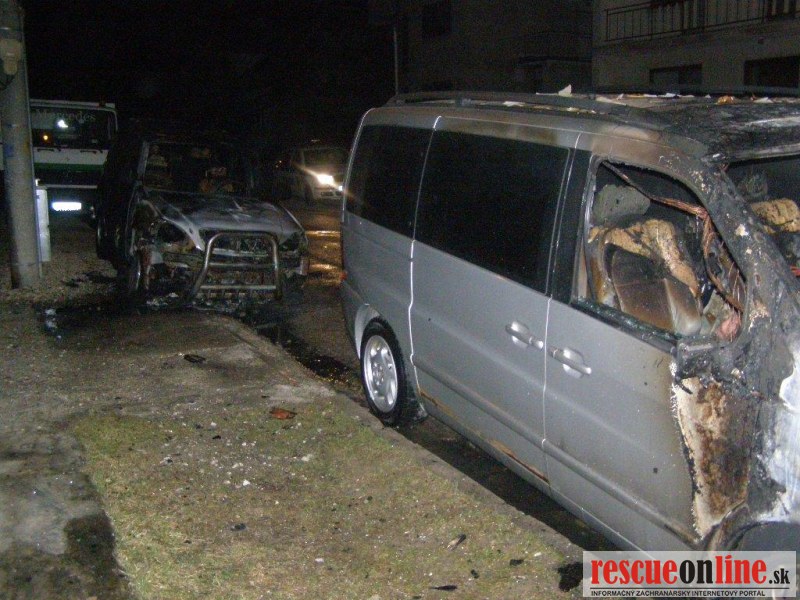 KR HaZZ Trnava |MM| Na ohlasovňu požiarov hasičskej stanice v Hlohovci bol dňa 05.03.2013 o 02:56 hod. prostredníctvom Koordinačného strediska IZS v Trnave nahlásený požiar dvoch osobných motorových vozidiel na Pltníckej ulici v Šulekove (okres Hlohovec). Na miesto udalosti boli vyslaní štyria príslušníci s technikou MB ATEGO a CAS 30 IVECO TRAKKER. Po príjazde na miesto udalosti bolo prieskumom zistené, že sa jedná o požiar dvoch osobných motorových vozidiel značiek Mercedes Vito V 220 CDI a Hyundai Terracan, ktoré boli zaparkované za sebou pred rodinným domom. Na miesto udalosti sa dostavili aj príslušníci PZ SR. Zasahujúci príslušníci HaZZ použili na lokalizáciu a následnú likvidáciu požiaru jeden vysokotlakový a jeden „C“ prúd, pričom z dôvodu silného zadymenia používali na ochranu dýchacích ciest autonómne dýchacie prístroje. Po lokalizácií požiaru hasiči násilne otvorili predné kufre na oboch vozidlách a dohášali ich motorové časti a interiéry. Po likvidácii požiaru, zdokumentovaní a odovzdaní miesta udalosti príslušníkom PZ SR a zbalení vecných prostriedkov sa hasičská jednotka vrátila na svoju základňu. Následkom požiaru vznikla majiteľovi osobných motorových vozidiel priama materiálna škoda predbežne vyčíslená na 10.000, - EUR. Pravdepodobnou príčinou vzniku požiaru bolo úmyselné konanie neznámej osoby.